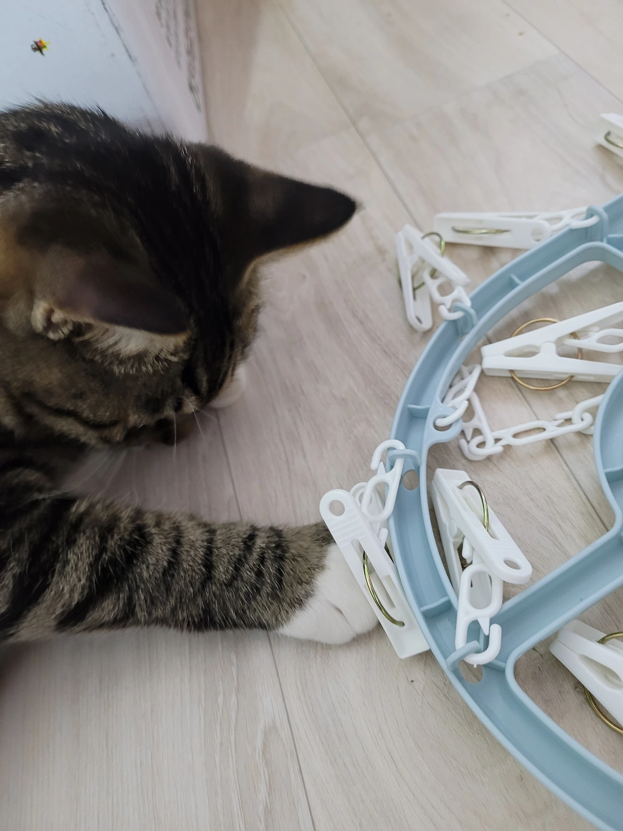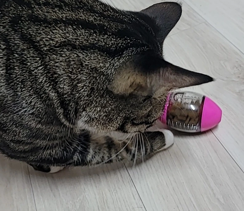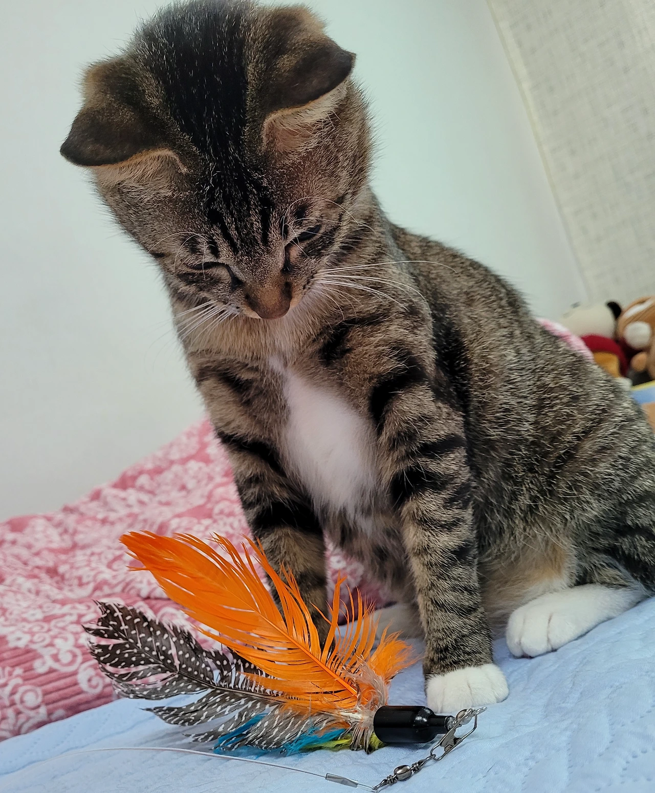고양이 장난감으로는 흥미를 끌지 못했다.