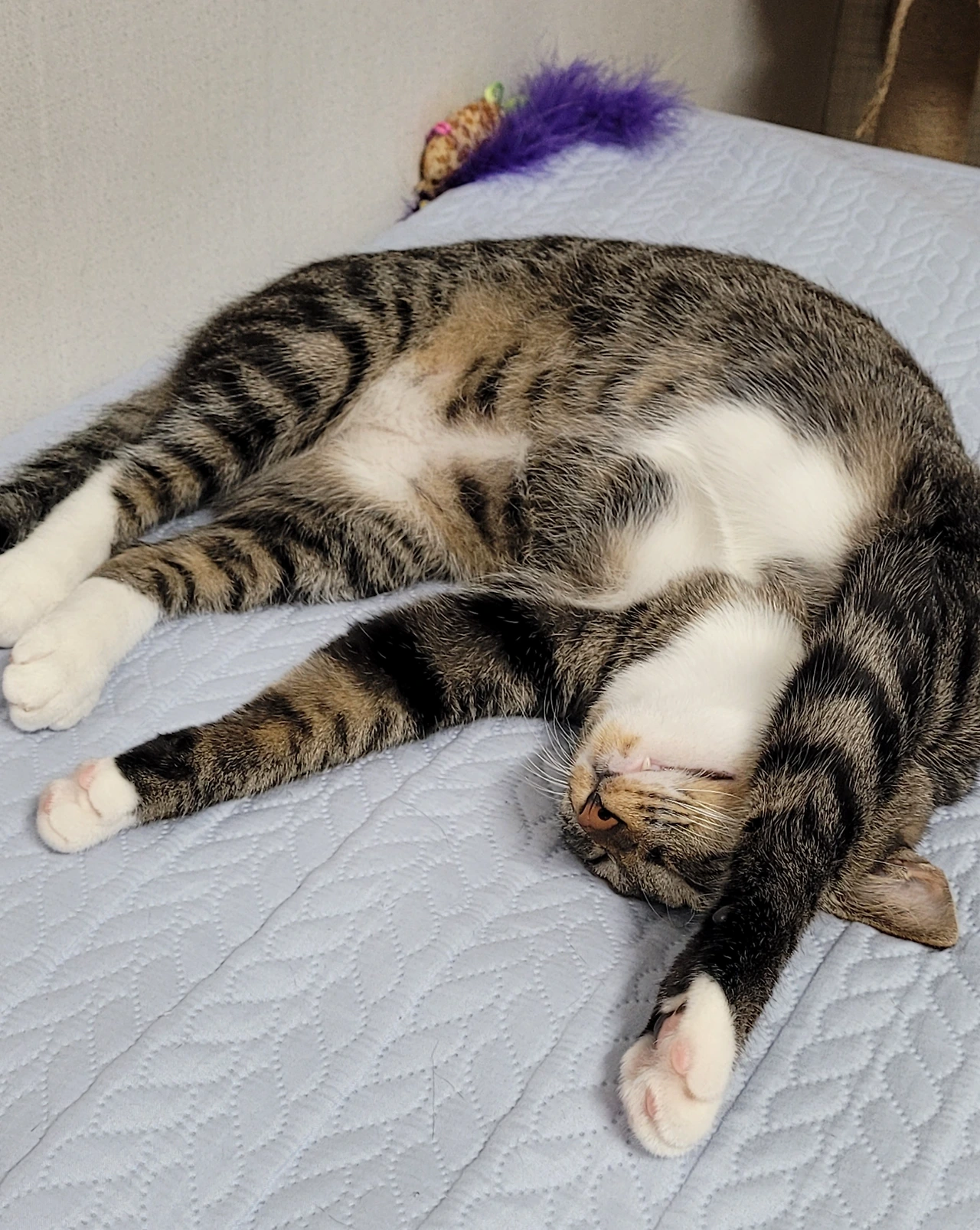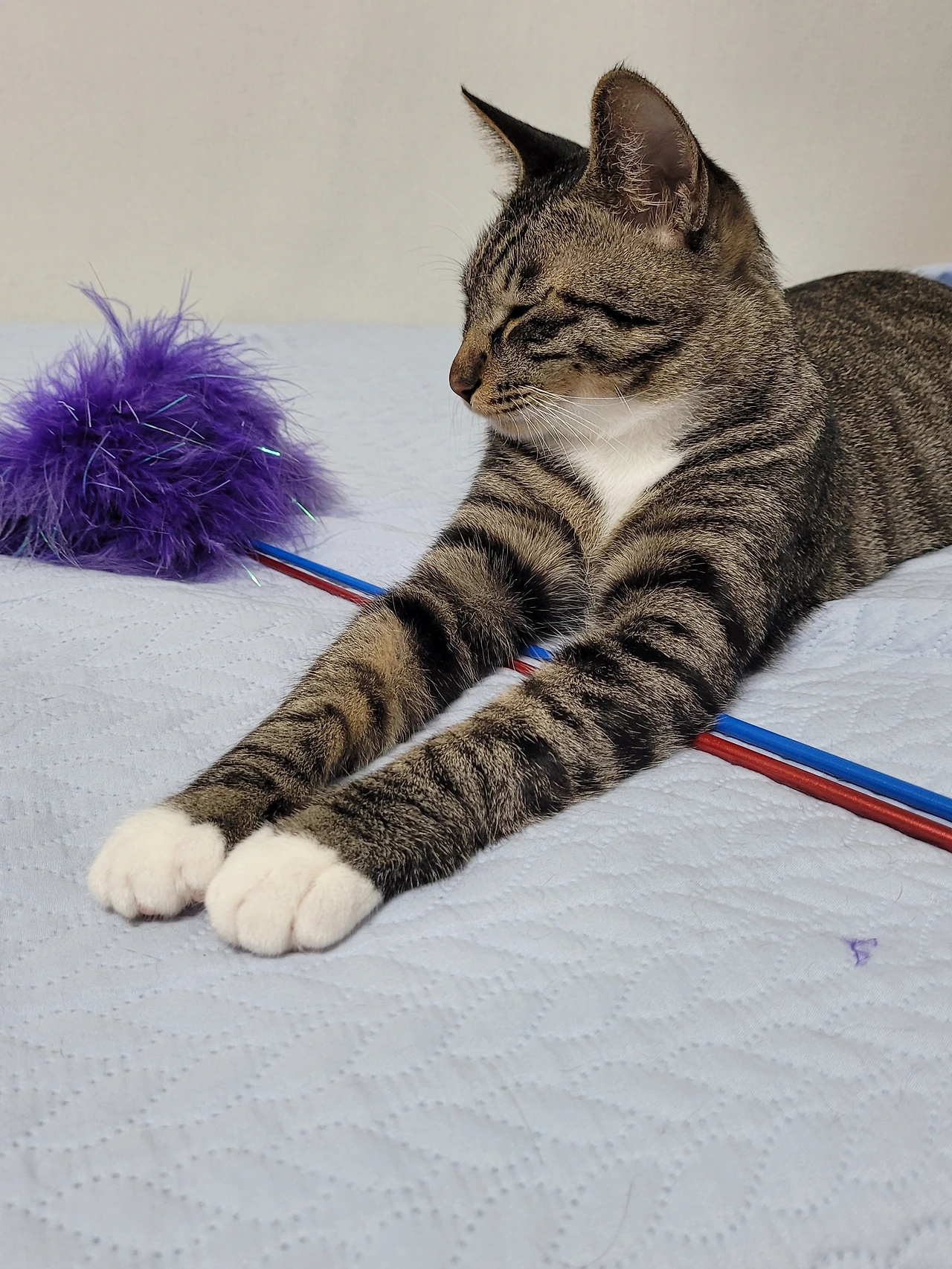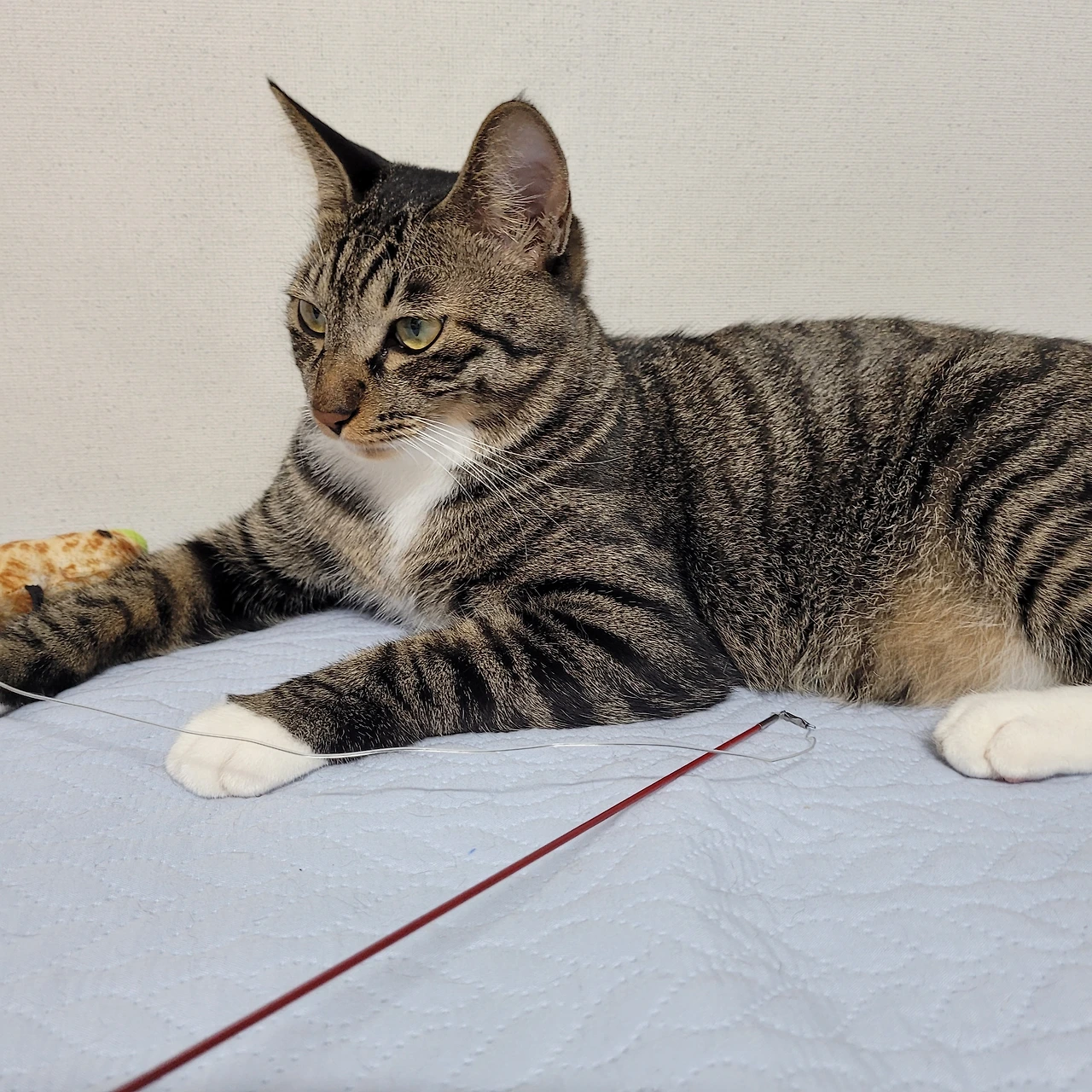 고양이 장난감으로는 흥미를 끌지 못했다.