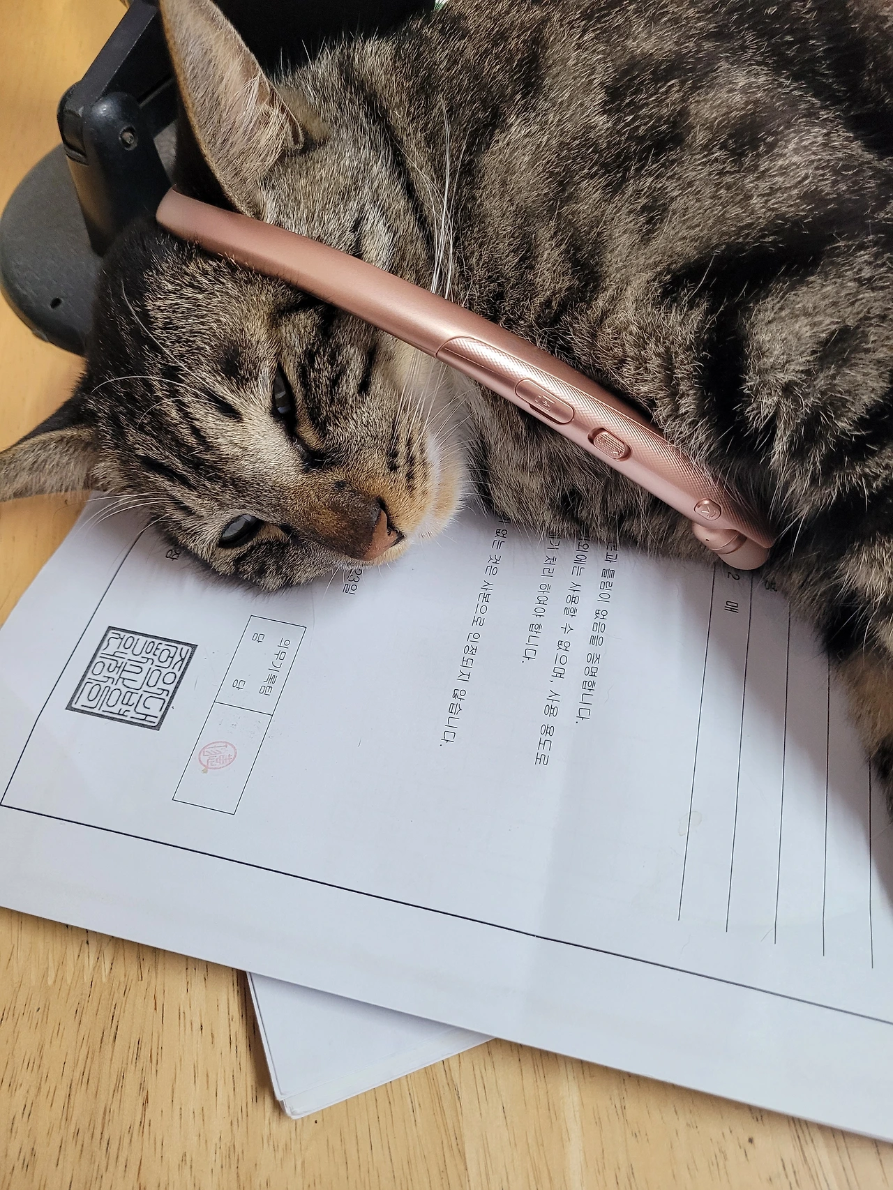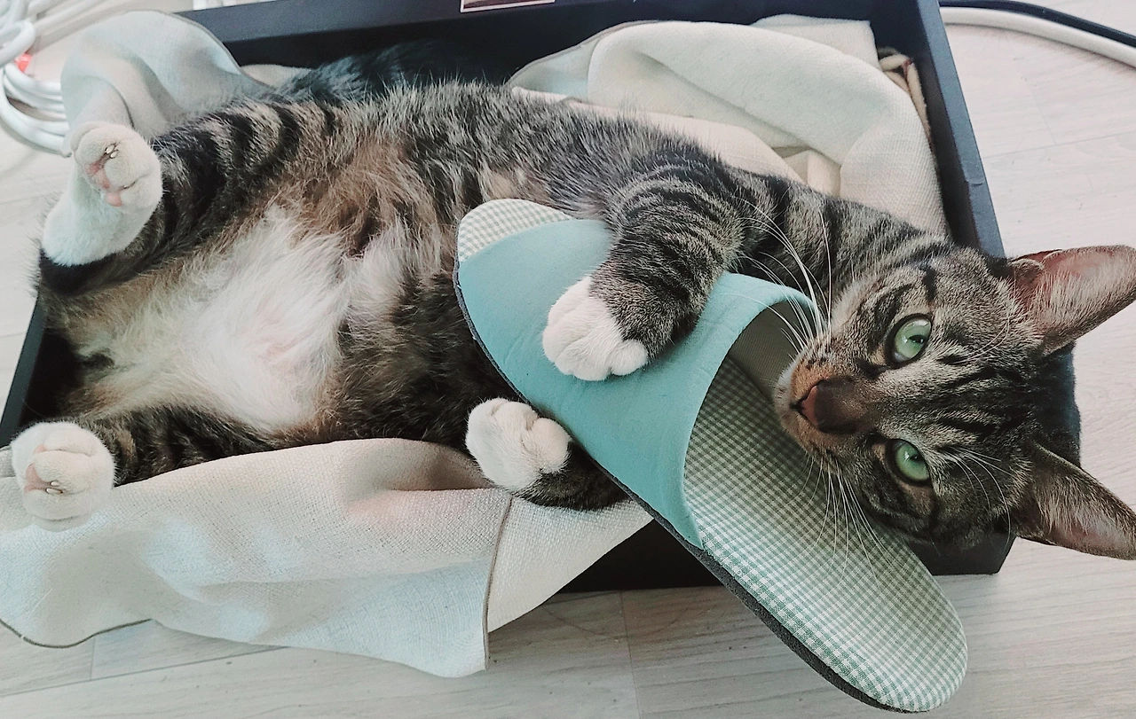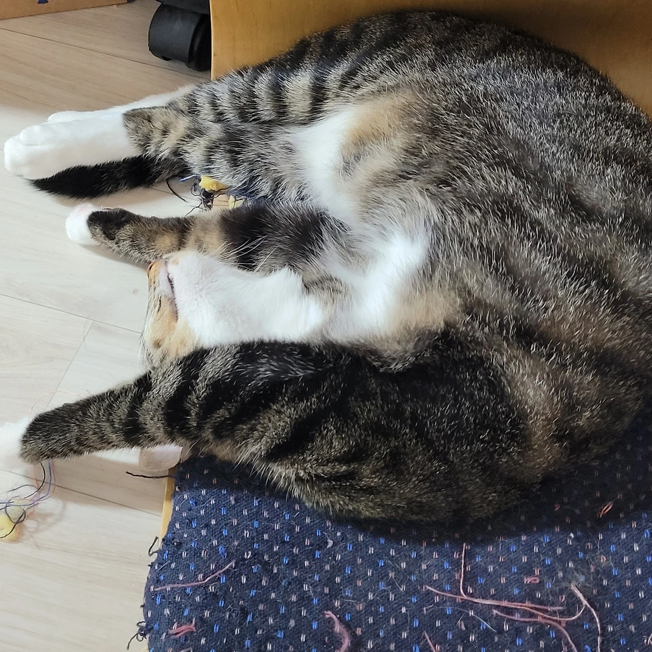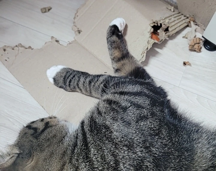 집 안에 있는 박스를 물고 뜯다가 잠들었다.