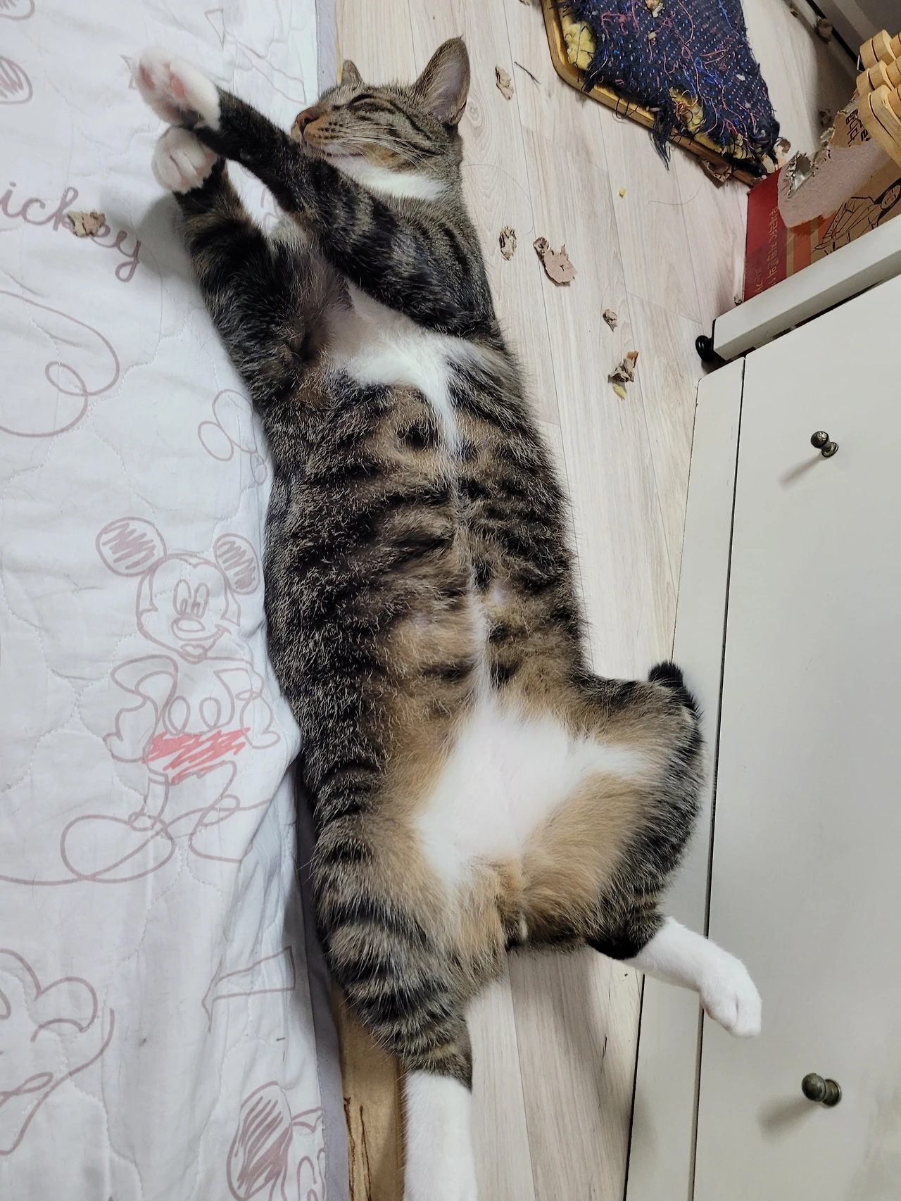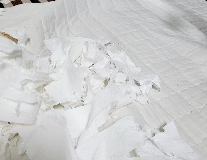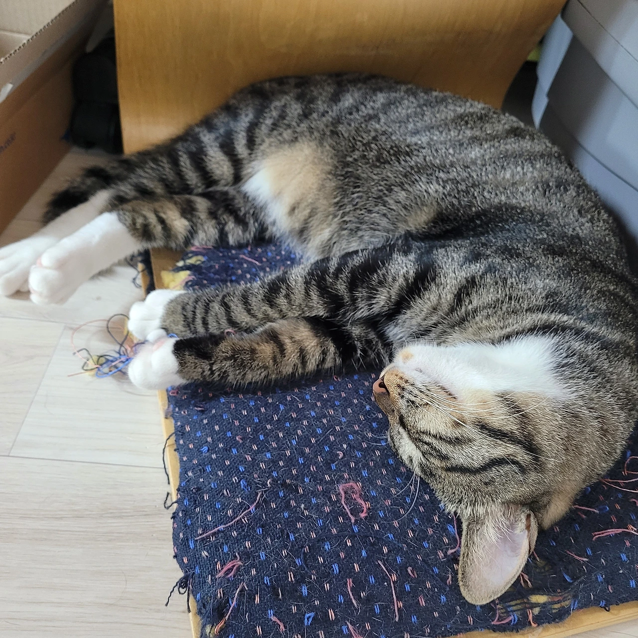 집 안에 있는 박스를 물고 뜯다가 잠들었다.