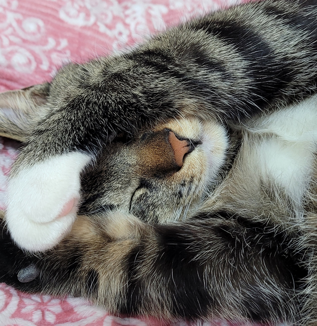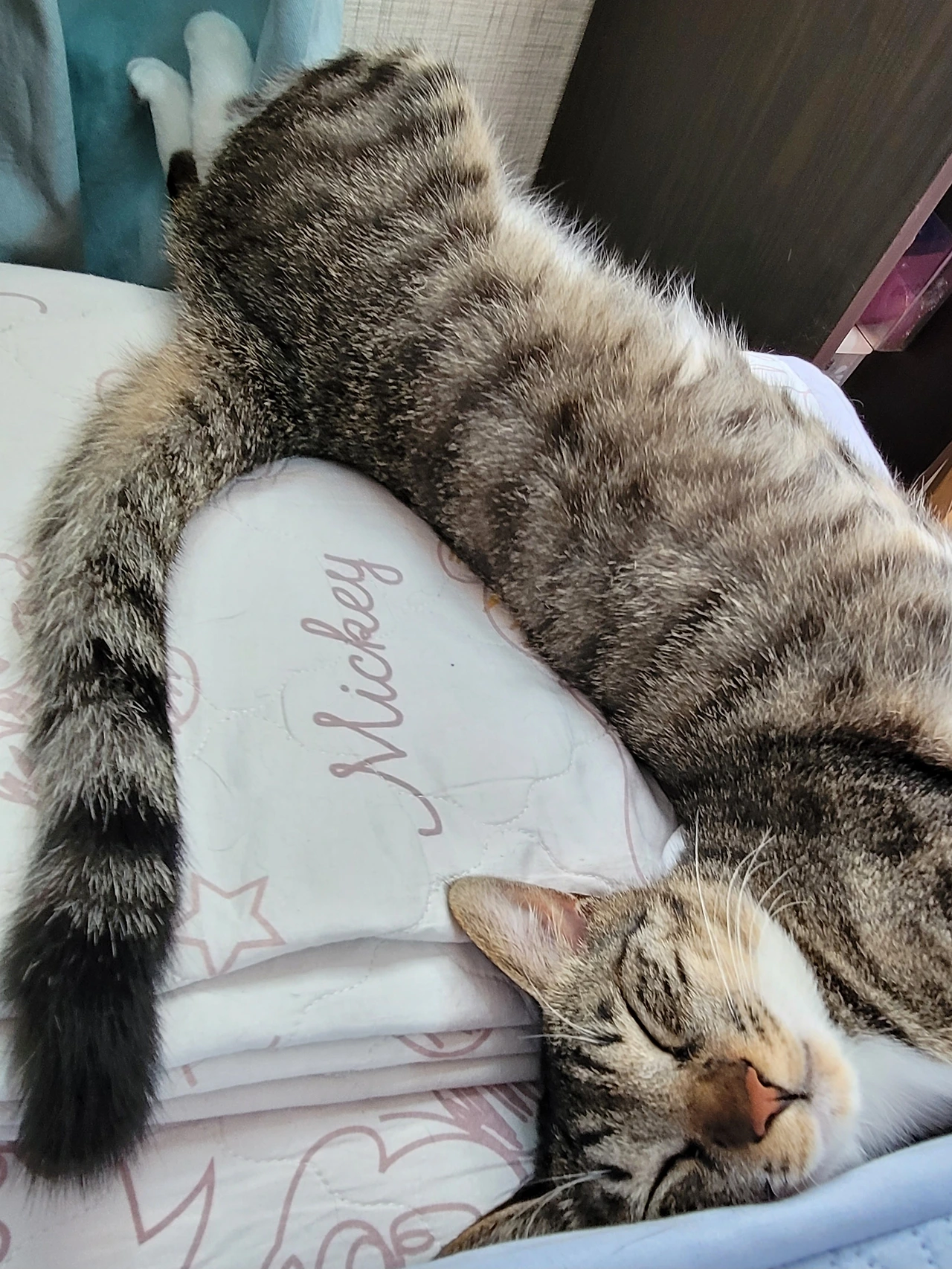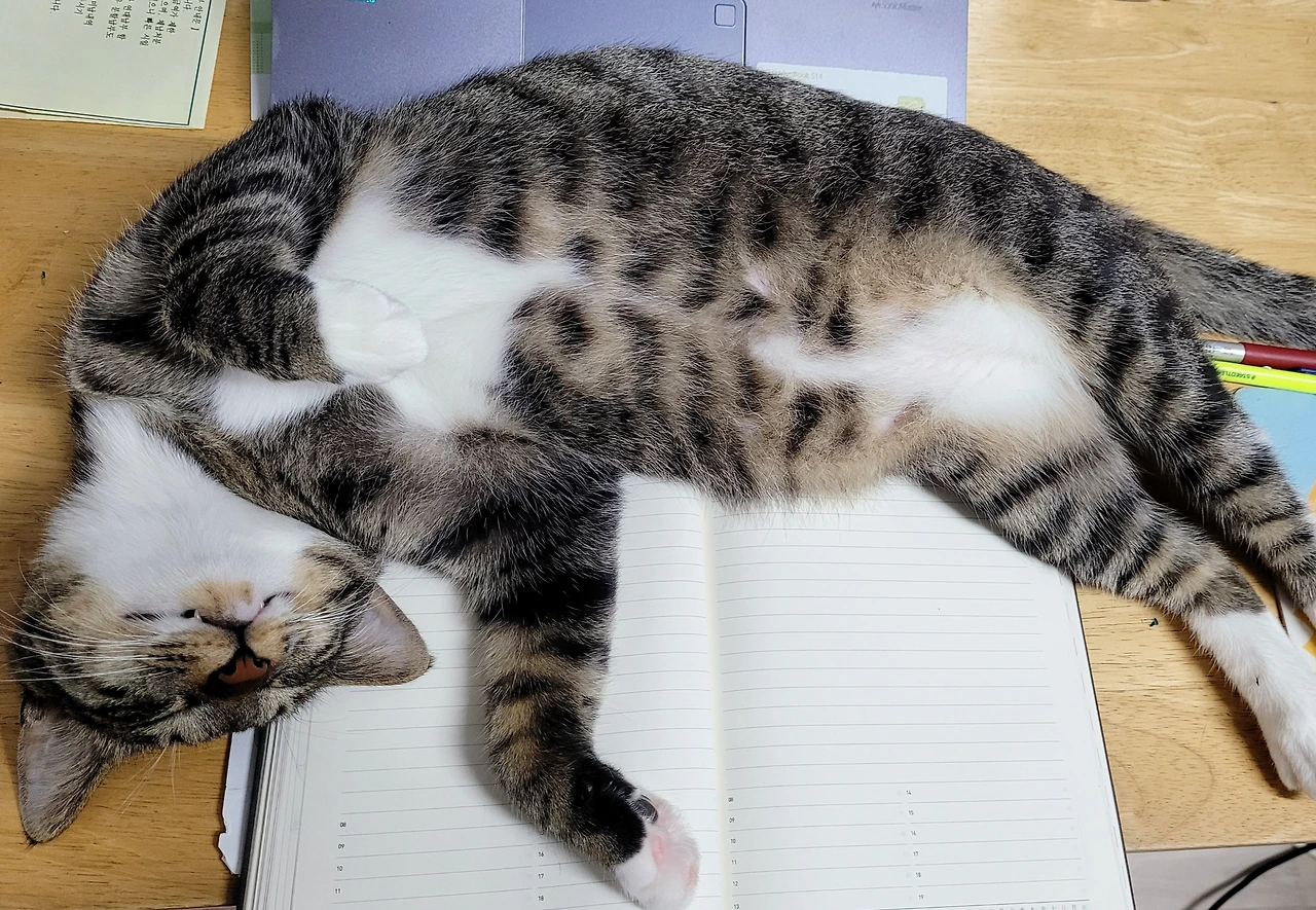 털 말리고 책상 위에 올라와 배를 보이며 잠을 잔다.