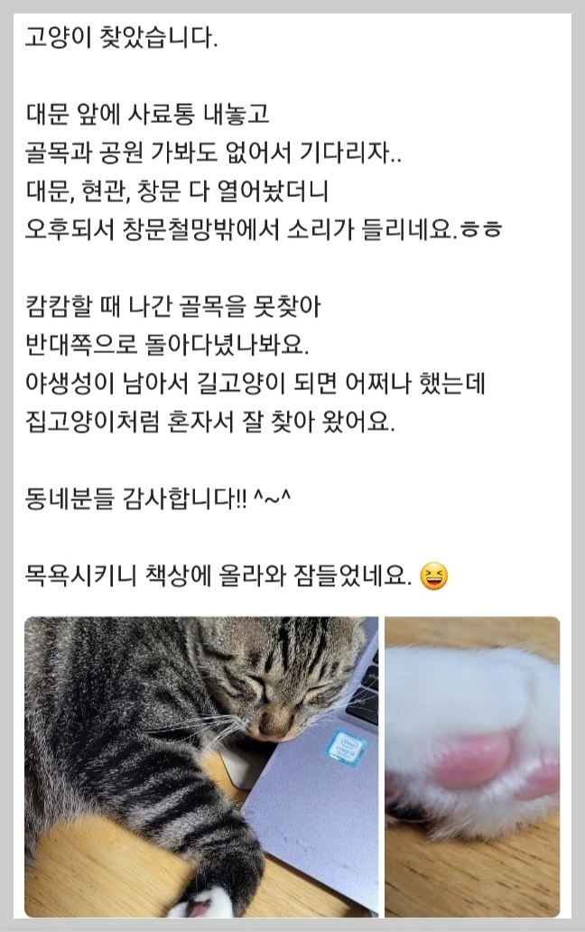 고양이 찾았다는 글을 당근에 올리고 나서야