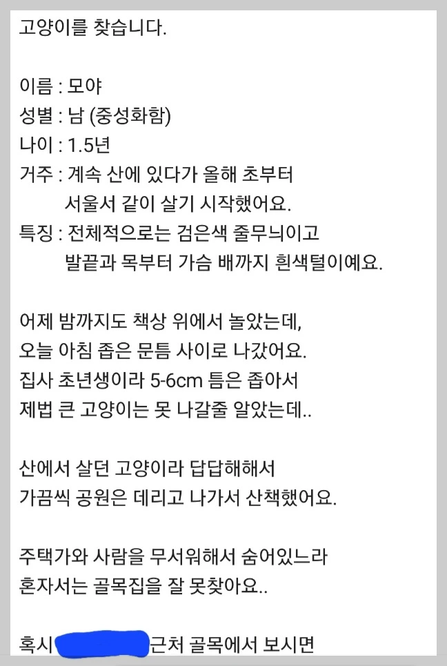 당근마켓에도 고양이 찾는 글을 올렸다.