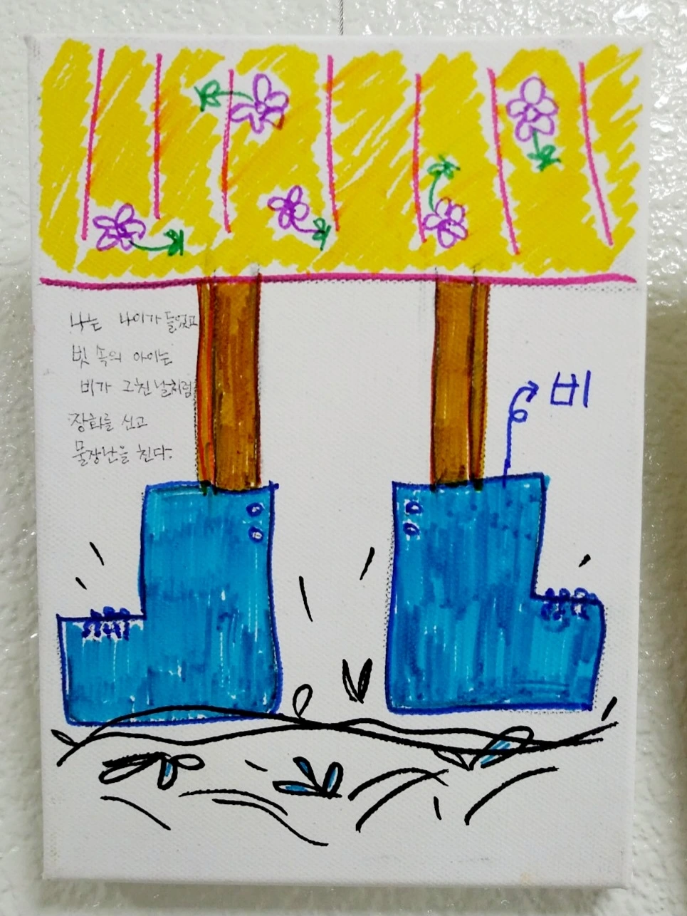큰 장화에 튕기는 신나는 물방울이 그때의 나입니다.