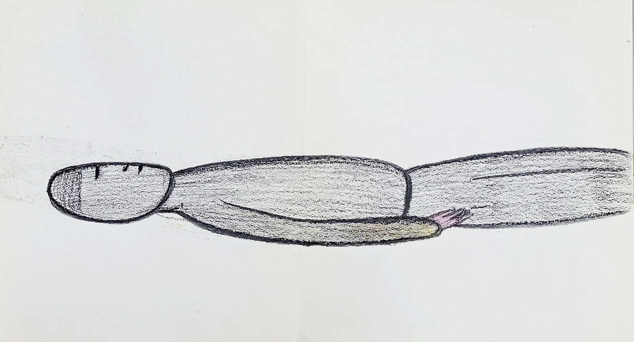 반듯하게 누웠고, 여자인지 남자인지 모르겠다.