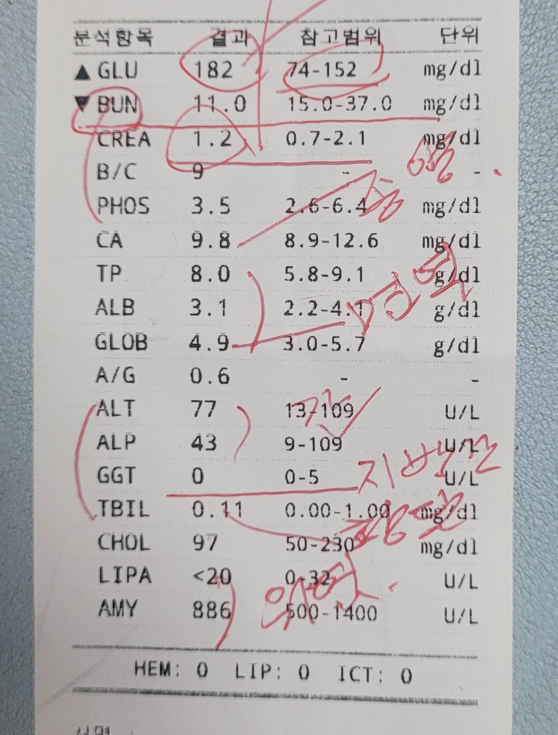 반려동물 피검사를 한다면 결과지는 사진 찍어두세요.