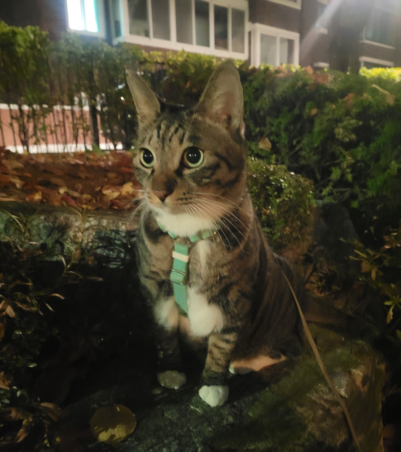 하네스 착용하고 공원에서 산책하는 호야.