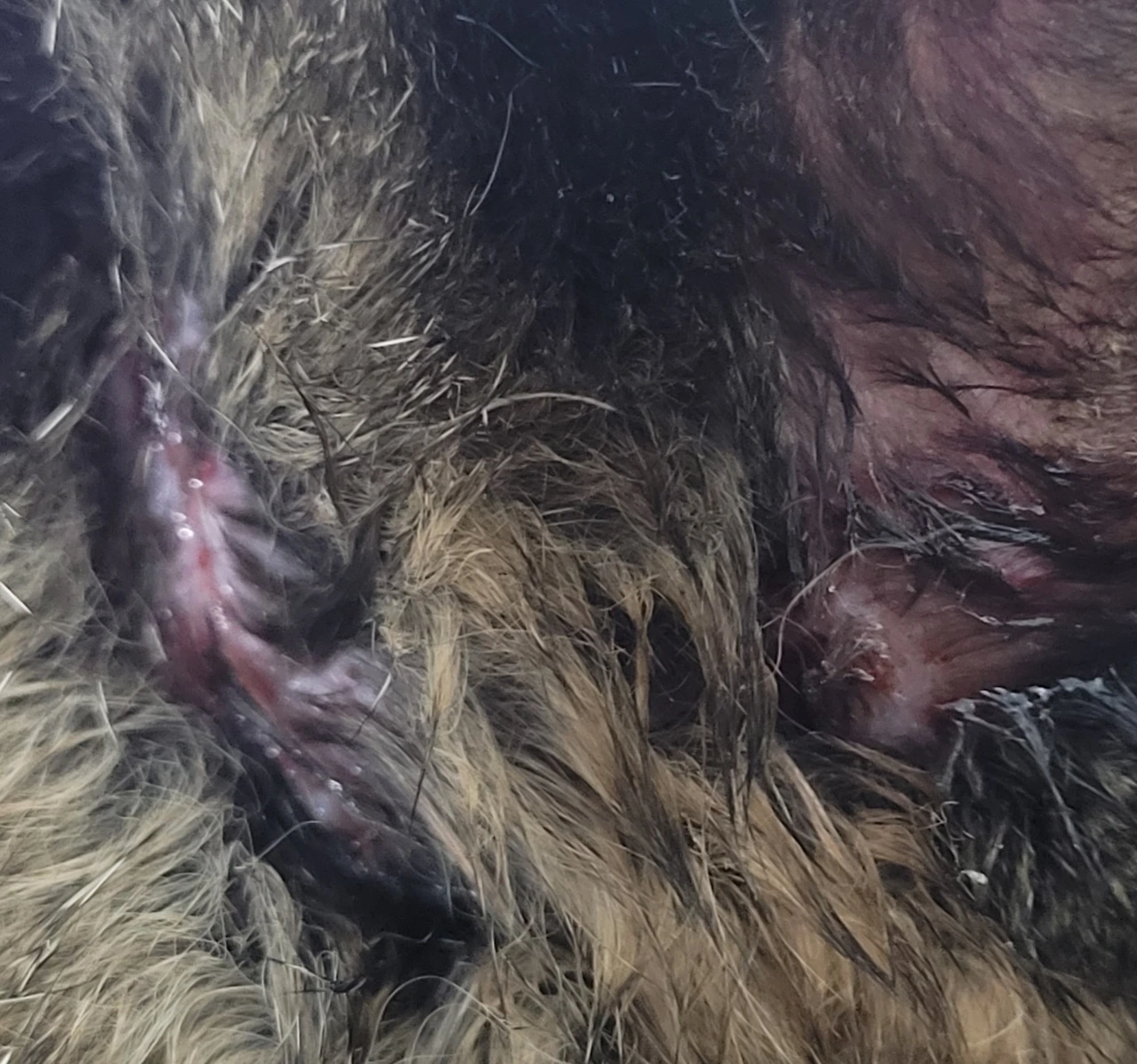 길냥이가 호야의 등에서 송곳니로 팍 찍은 것 같더군요.