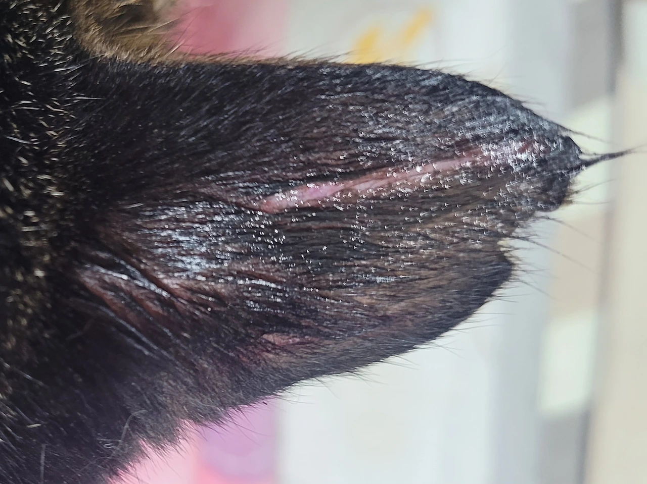 연두색 고름을 모두 다 빼내고 털을 깎으니