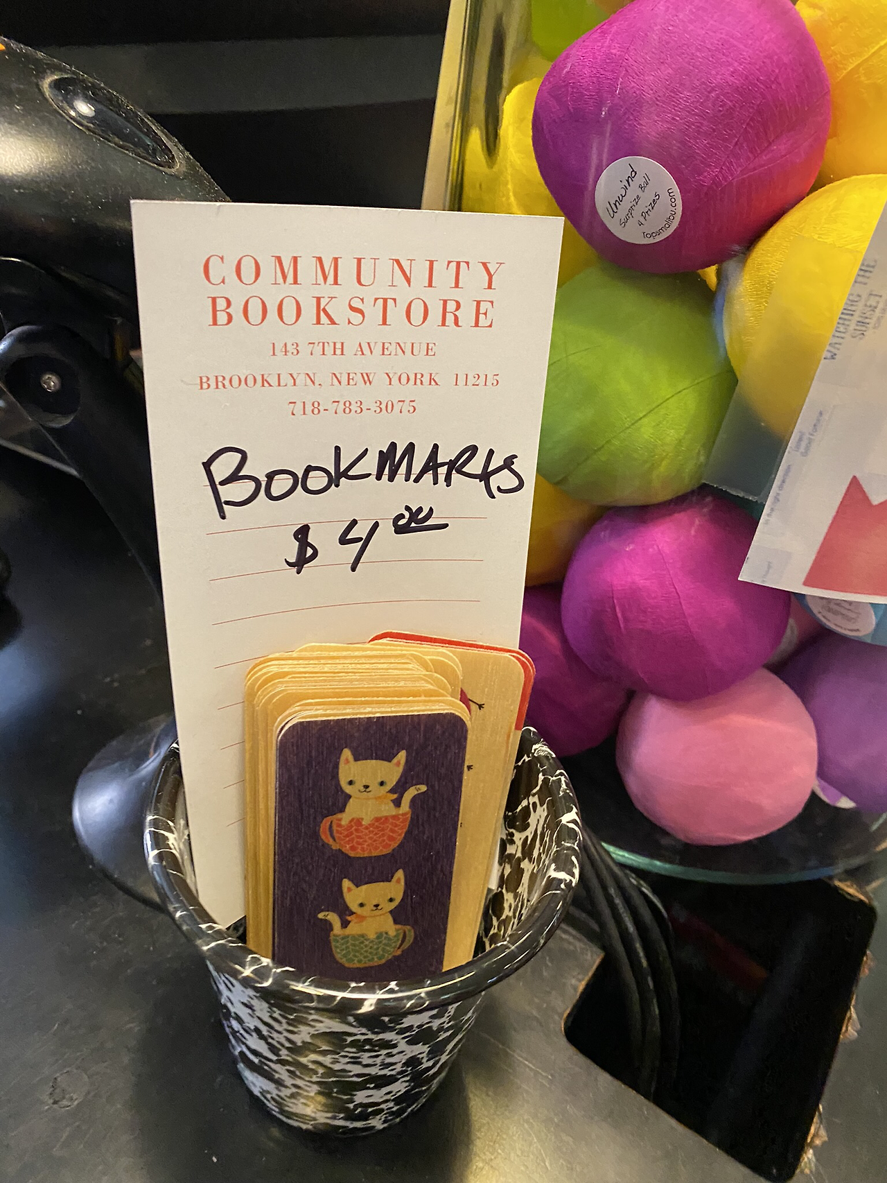 요즘은 서점에 책만 있는 것이 아니라, 책과 관련된 여러 가지 상품들을 전시하고 판매하는데, 여기도 티셔츠나 캔버스 토트백, 북마크 등이 있었다. 북마크의 고양이 그림이 예뻐서 찍어봤다.