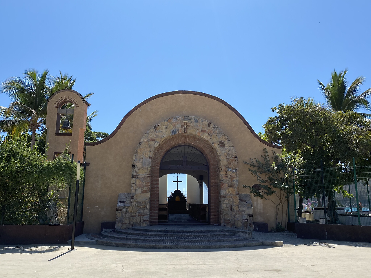 산타 크루즈 해변 옆 광장에 있는 산타 크루즈 예배당(Capilla De La Santa Cruz)의 모습. 문이 없는 독특한 모습이다.