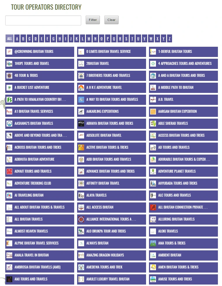 당신은 먼저 부탄 여행부 홈페이지와 친해져야 한다. 이곳에는 부탄 여행에 관한 양질의 정보가 많이 담겨있다. 그리고, 부탄여행을 준비해야 하는 우리에게 필요한 가장 중요한 정보도 여기 있다. 바로 부탄 여행 에이전트 회사들의 리스트! 정부가 인증한 에이전트들의 목록이 이곳에 있다. 들어가 보면 목록이 끝없이 이어져 있다. 도대체 몇 개나 될까. 제가 세보겠습니다.