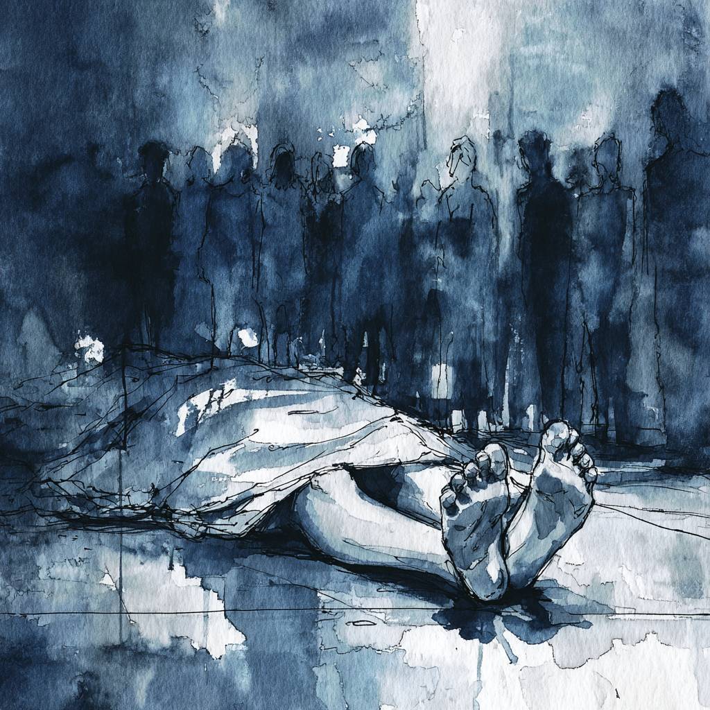 예배 공간은 스무 평 남짓으로 작고 낡은 분위기였다. 하지만 물걸레로 여러 번 닦은 듯 바닥이 번들거렸고, 가운데는 하얀 천으로 얼굴을 가린 여자가 조용히 누워있었다. 세 자매 중 첫째 이유정이었다.
