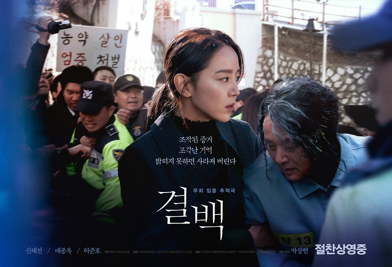 영화 <세 번째 살인>에서 감독(고레에다 히로카즈)은 변호사와 살인자의 동일성을 강조하고자 접견장 유리창에 두 사람의 얼굴을 겹쳐 놓는다. <결백>에서도 거의 비슷한 연출이 보인다. 엄마(배종옥)가 사건에 어떻게 개입했는지 실체가 드러나는 즈음, 남성들의 폭력을 온몸으로 견뎌내며 살아온 두 여성의 연대감이 <세 번째 살인>과 비슷한 구도로 표현됐다. 감독이 하고 싶은 얘기가 이거였구나, 싶었다.