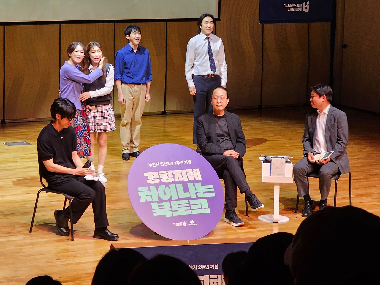 그런 자리에 앉아있다니 쵸금 어색했다. 뭐랄까, 블루스퀘어 같은 곳에 뮤지컬을 보러 가서 잘 꾸미고 나온 주변사람들과 함께 앉아있으면 뭔가 그럴듯한 일이 일어날 것 같은 기대감이 들지만. 부천시청에서 하는, 무료 ‘북토크’에, 무려 시장님이 초대손님으로 나오신다니, 뭔가 주눅 든 공무원들이 줄줄 서서 구린 풍경을 연출할 것 같은 의심이 들었다.