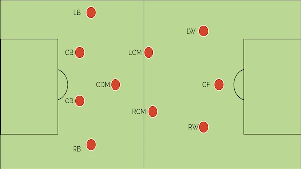 4-3-3 포메이션으로 경기를 시작하지만, 가브리엘과 살리바만이 최종수비라인에 남고 양풀백은 모두 전진한다. 칼라피오리와 팀버는 윙어들을 뒷받침할뿐만 아니라 직접 공격과정에 관여하며 상대의 하프스페이스를 공략한다. 수비멘디와 라이스는 빌드업 상황에서 중앙으로 내려와 공을 돌려주고 횡패스를 통해 상대의 압박을 끌어내고 정확한 킥으로 반대전환, 이후 윙어들의 드리블을 기대한다.