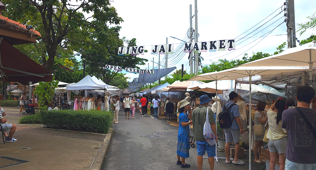 우리가 도착한 첫 번째 마켓은 찡짜이 마켓이야. 운영시간은 아침 6시 30분부터 오후 2시까지로 되어 있더라고. 그랩을 타고 마켓으로 향했어. 마켓 입구에 내려 사람들이 모여있는 것을 보니까 심장이 두근두근했어. 이런 분위기 정말 좋아하거든. 찡짜이 마켓은 주말에만 열리는 마켓이라 천막을 친 부스가 쭉 이어져 있어. 부스마다 판매하는 물건이 여러 가지이기 때문에 구경하는 재미가 아주 쏠쏠했어.