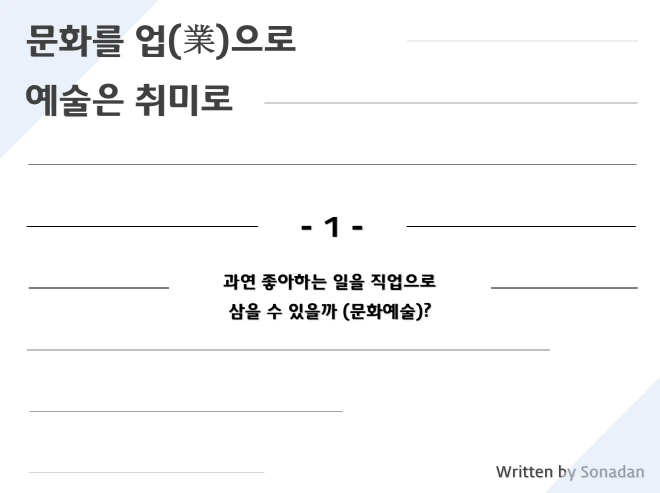 #2 과연 좋아하는 일을 직업으로 삼을 수 있을까(문화예술)?