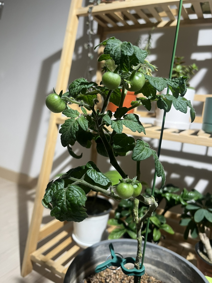 아! 그리고 가장 큰 화분에는 아직 따먹을 수 없는 방울토마토 다섯알이 맺혔고 자라고 있습니다.