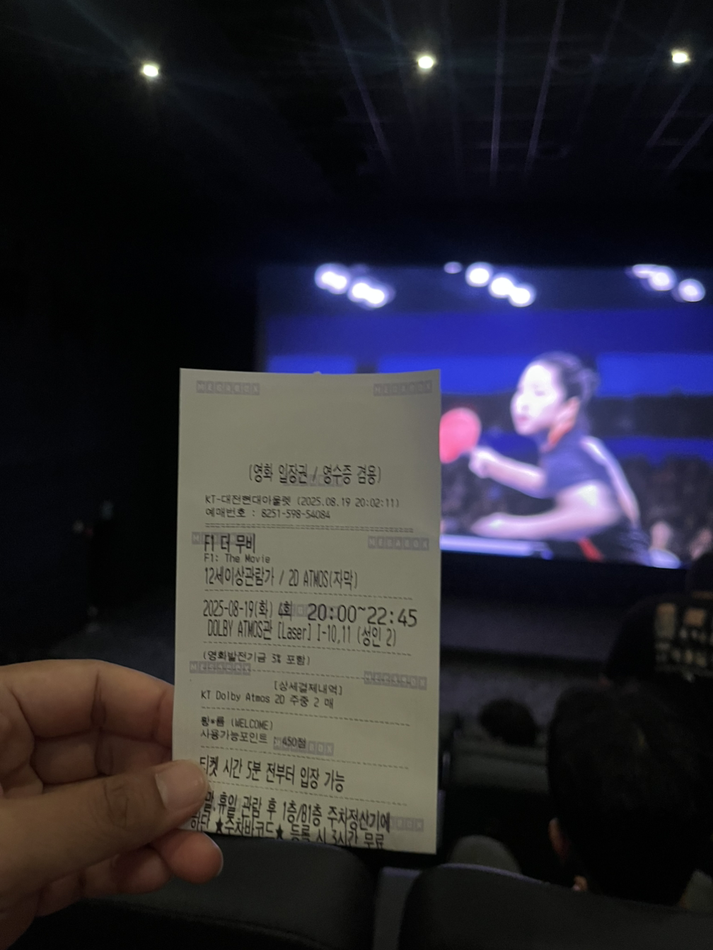 무더위가 끝나가는 8월의 평일 저녁에 나는 남편과 F1 더 무비를 극장에서 보고 왔다.