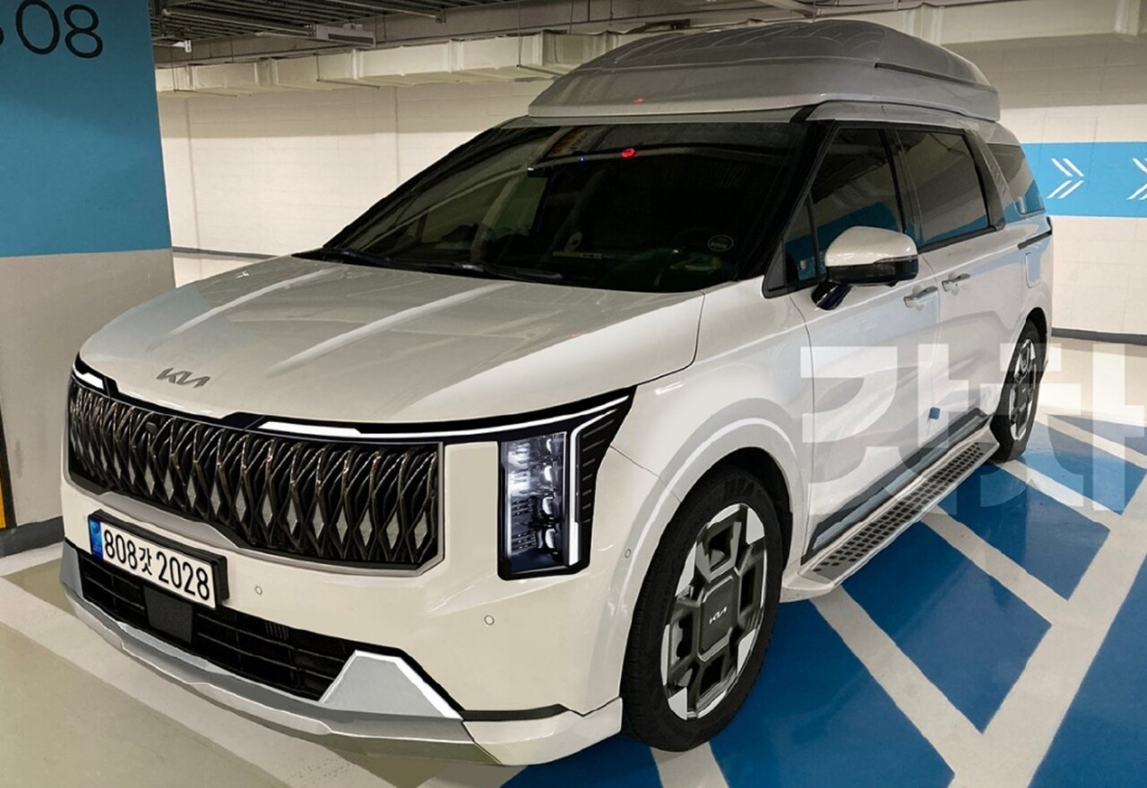 그런 가운데 위장막을 완전히 걷어낸 신형 카니발의 모습이 보배드림을 비롯한 국내 자동차 커뮤니티에 올라왔다. 정황상 광고 혹은 카탈로그 이미지 촬영 중인 것으로 파악된다. 외관은 국내 및 해외에서 제시한 예상도와 거의 비슷한 형태를 갖는다. 직선을 강조한 새로운 라디에이터 그릴과 세로형 헤드램프, 스타맵 시그니처 주간주행등, 범퍼 하단 스키드 플레이트 등 최근 공개된 기아 신차들과 유사하다.