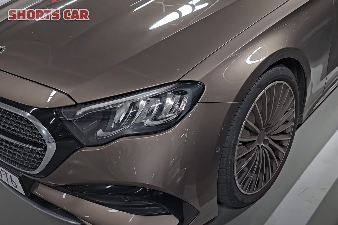 신차 정보 유튜버 '숏카'가 포착한 벨벳 브라운 컬러의 신형 E클래스는 AMG 라인인 것으로 파악된다. 전면부의 경우 그릴과 이어진 듯한 헤드램프는 두줄 주간주행등을 중심으로 아래쪽에 굴곡을 넣었다. 2009년 출시한 9세대 E클래스(W212)의 부분변경 모델을 떠오르게 한다. 메르세데스-벤츠의 기성 패밀리룩보다는 전기차 라인업인 EQ 쪽 디자인에 더 가깝다.