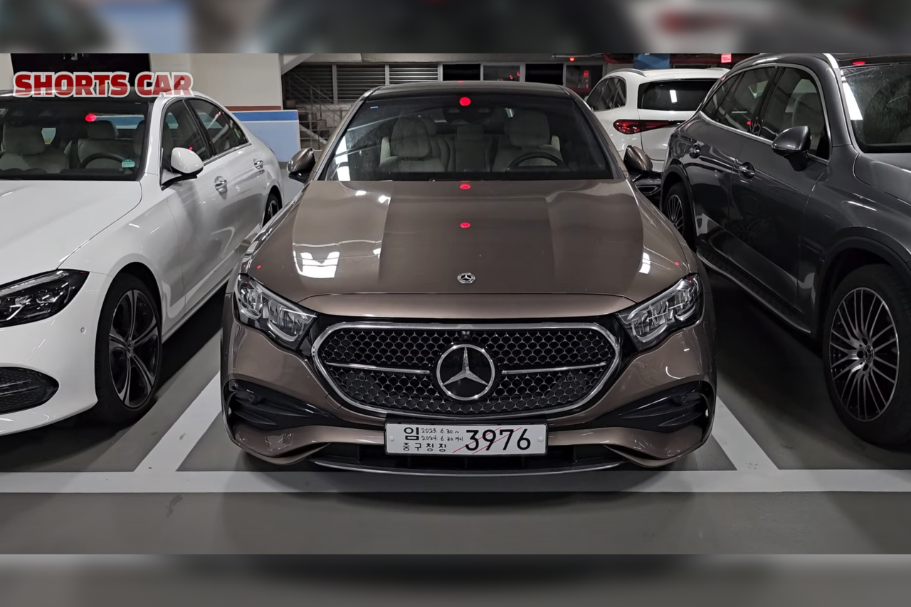 메르세데스-벤츠 신형 E클래스의 실물 테스트카가 국내 한 주차장에서 포착되어 이목을 끌고 있다.