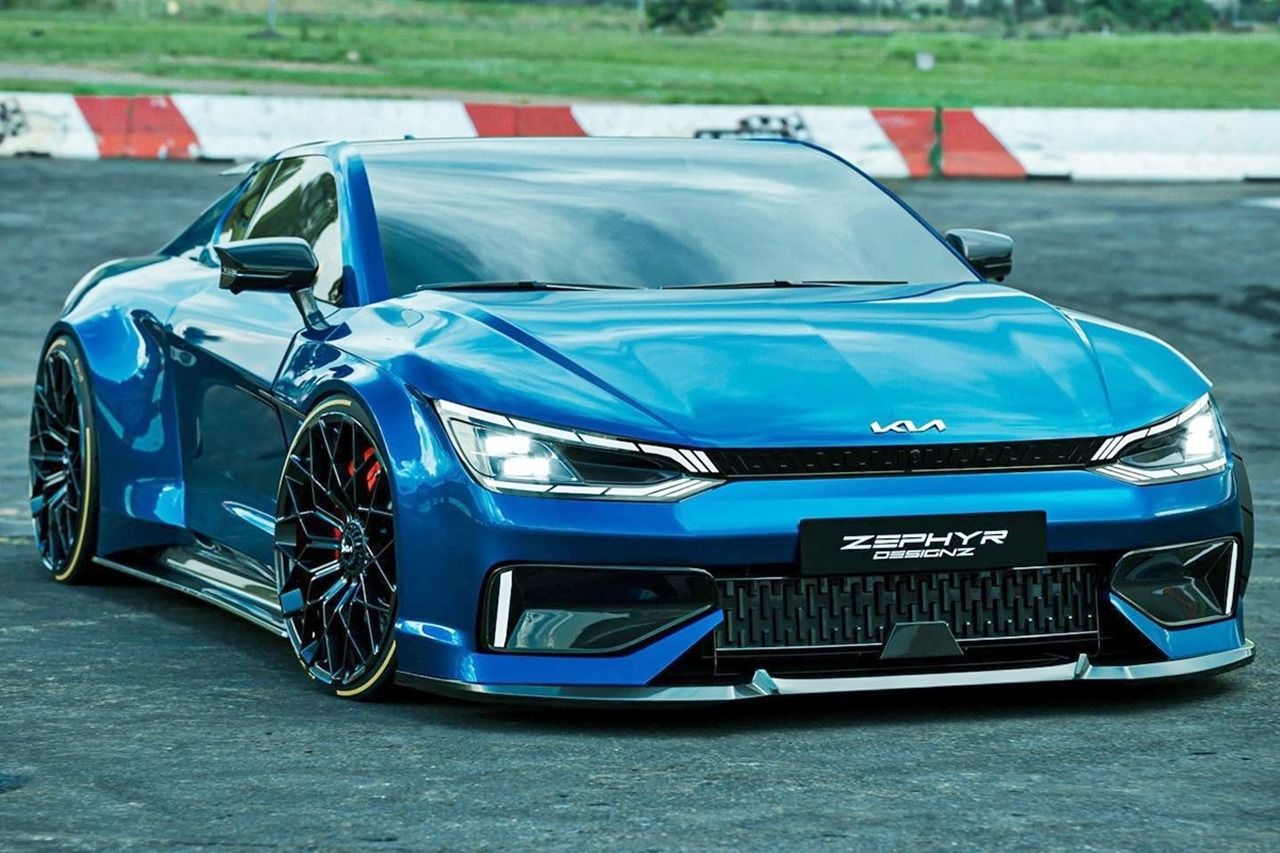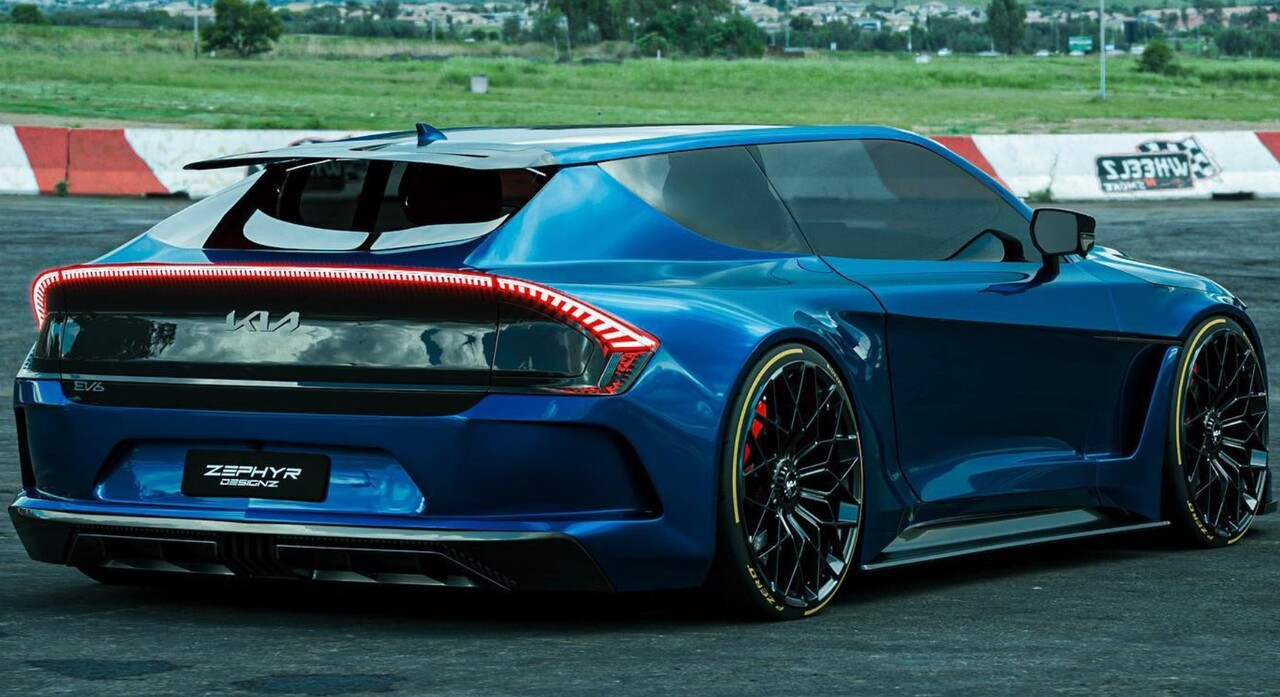 그런데 이 EV6가 더 폼나게 바뀐다면 어떤 느낌일까. 이번에도 제퍼 디자인즈는 차의 레이아웃을 크게 수정했다. 이번엔 지상고를 낮추고, 차체 곳곳에는 에어로파츠 무장시켰다. 2열 도어는 온데간데 없고 루프 라인은 직선으로 뻗어 리어 스포일러와 연결됐다. 크로스오버 SUV였던 EV6가 3도어 슈팅브레이크로 거듭나는 순간이다.