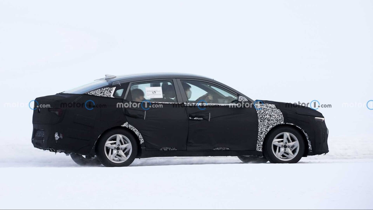 측면 윈도우라인은 K5의 느낌을 그대로 이어받았다. 캐릭터라인 등은 위장막으로 가려져 있어 파악이 쉽지 않다. 실내 역시 자세한 확인은 어렵지만, 계기반과 터치스크린이 결합된 와이드 디스플레이가 적용된 것으로 보인다.