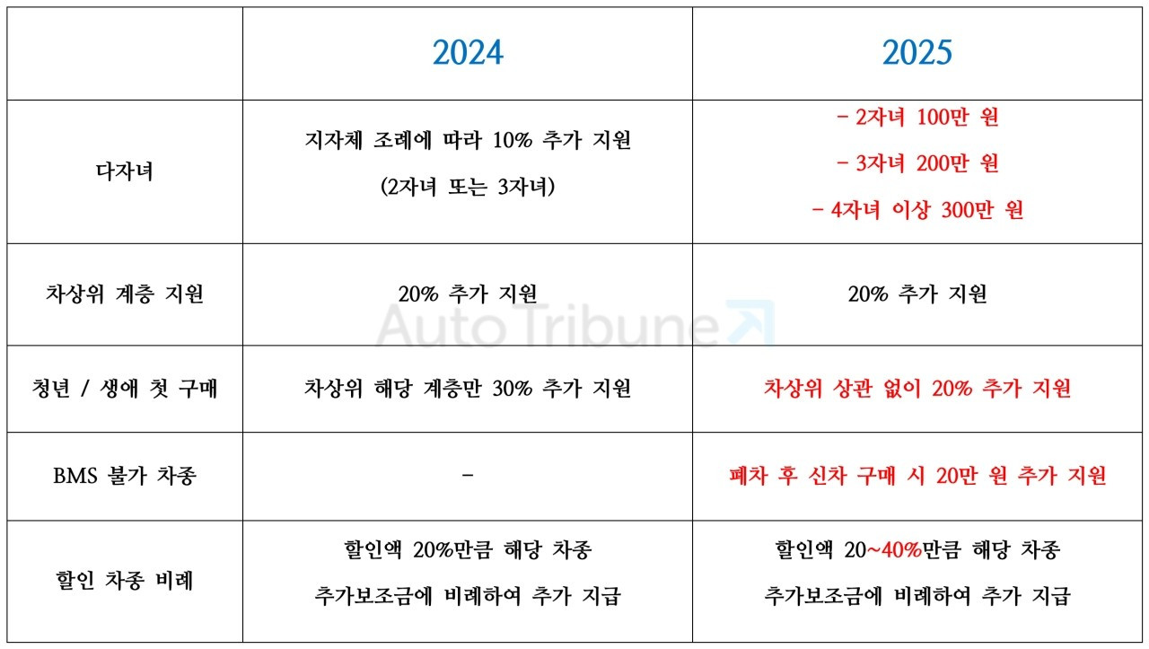 보조금 축소로 전기차 구매를 꺼리는 일부 계층을 위해 인센티브도 마련했다. 먼저, 다자녀 보조금이 지난해 11월부로 강화됐다. 2자녀 100만 원, 3자녀 200만 원, 4자녀 이상 300만 원을 추가로 지원한다.