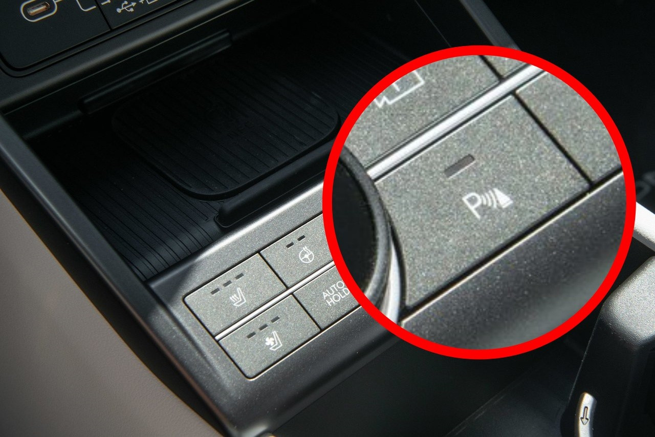 주차 센서 버튼은 사진에서 보이는 것처럼 P라는 글씨가 크게 쓰여 있고 장애물이 그림으로 그려져 있다. 보통 전후방에 주차 센서가 달려있어야 버튼이 추가되고, 후방에만 주차센서가 있다면 버튼은 따로 들어가지 않는다.