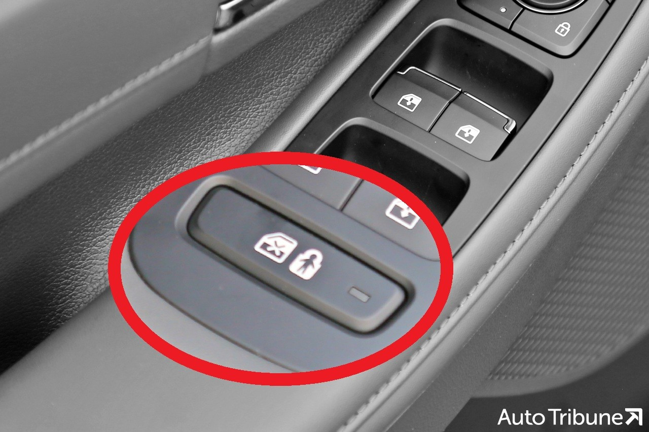 운전석 측 도어 트림에는 도어 락 버튼, 윈도우 개폐 버튼과 함께 전자식 차일드 락 버튼이 마련되어 있다. 윈도우 개폐 위에 ‘X’ 표시가 추가된 아이콘이 보통이다. 이를 누르면 2열 도어에서 창문을 열 수 없고, 운전석에서만 조작 가능하다.