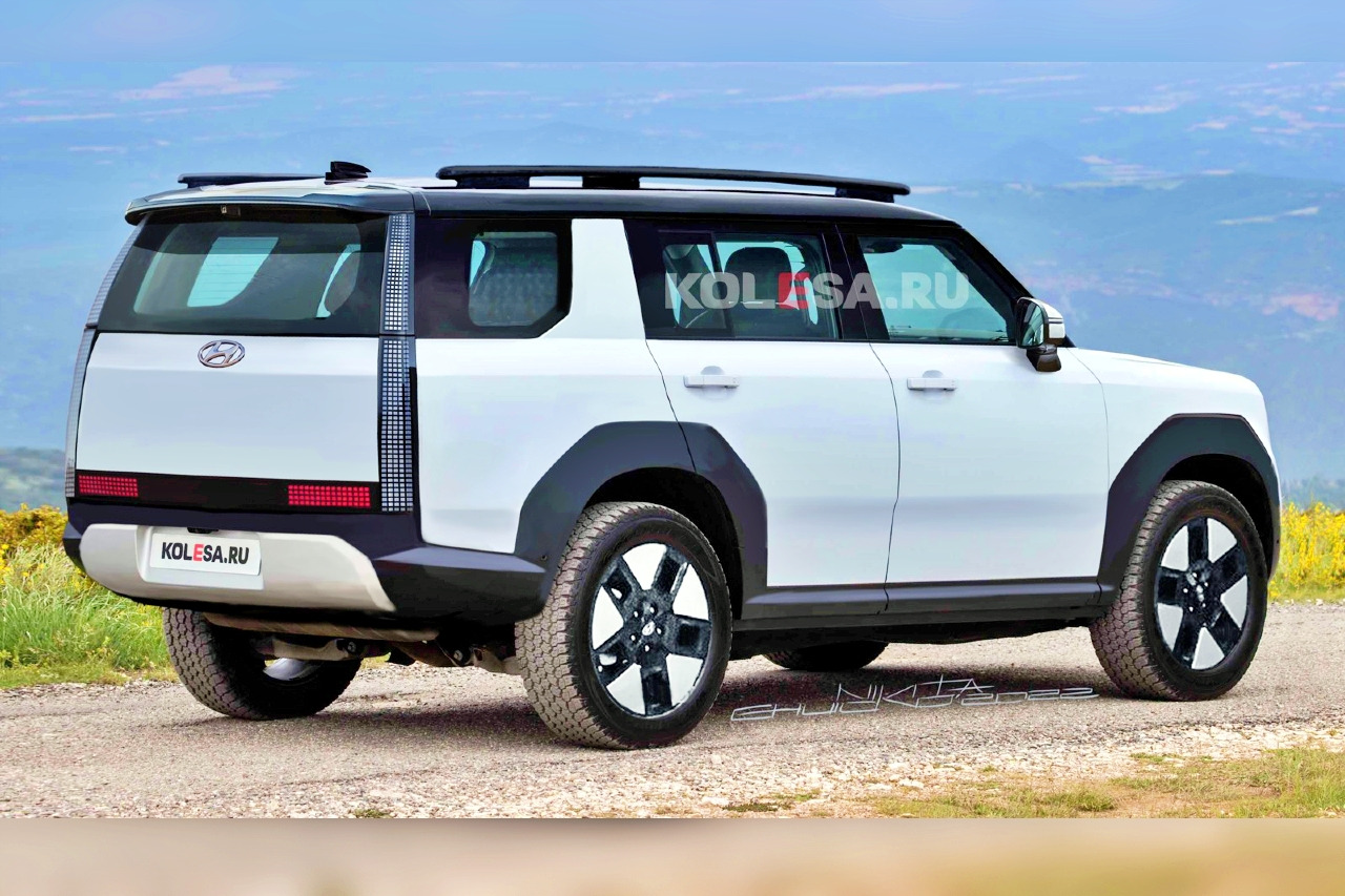예상도 속 싼타페는 테일램프를 루프 스포일러부터 범퍼까지 세로로 길게 배치했다. 검은색 가니시는 더 얇아졌고, 제동등을 추가로 뒀을 뿐 현행 모델과 닮은 구석을 찾기가 힘들다. 오히려 스타리아와 더욱 흡사한 느낌을 준다.