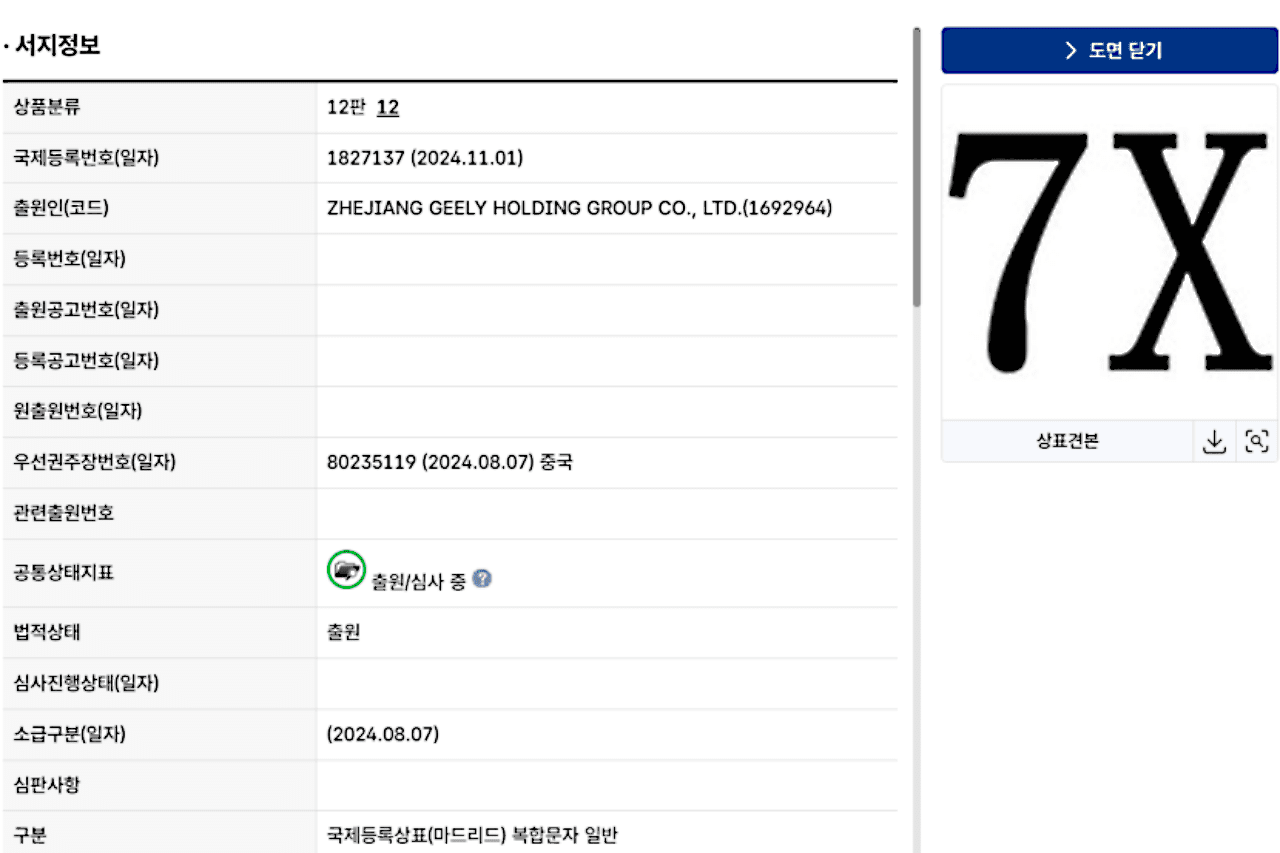 24일 대법원에 의하면 지커는 2월, '지커 인텔리전트 테크놀로지 코리아 주식회사' 한국 법인을 설립했다. 또한 지커를 산하 브랜드로 둔 저장지리자동차 그룹이 작년 '7X' 상표 등록을 마친 것도 확인됐다.