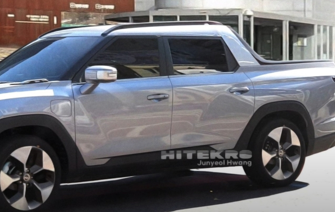 측면은 트렁크 영역을 적재함으로 길게 뺐다. 그러면서도 기존 토레스의 디자인을 크게 해치지 않았다. 프레임 바디 형태였던 지금까지의 쌍용 픽업과는 달리, 토레스 전기픽업은 모노코크 형태로 출시될 것이라는 예상이 지배적인 만큼 차체와 적재공간 사이가 분할되지 않고 그대로 이어진 형태를 취하고 있다. 공력성능 향상을 위한 평면 휠도 그대로다.