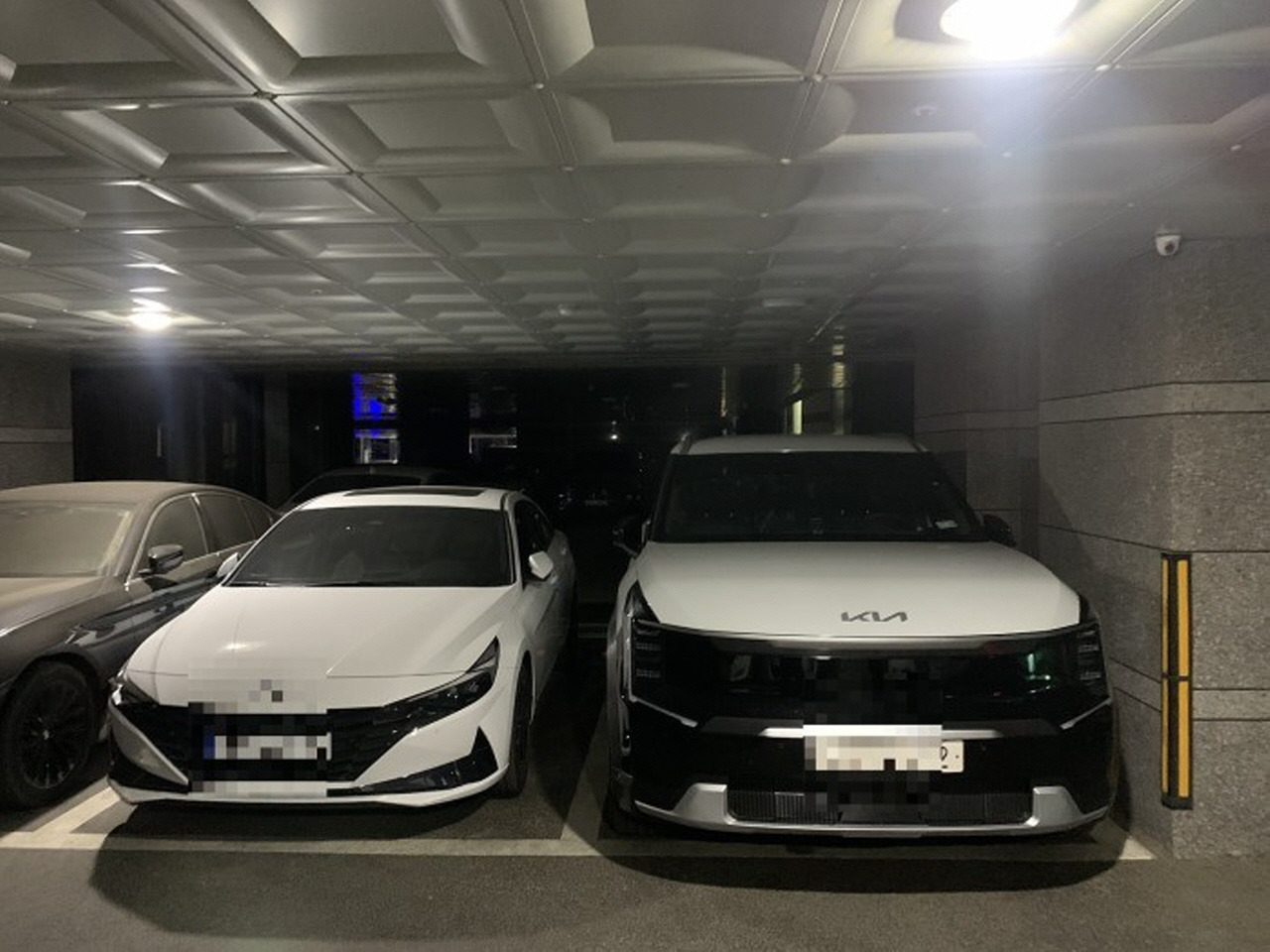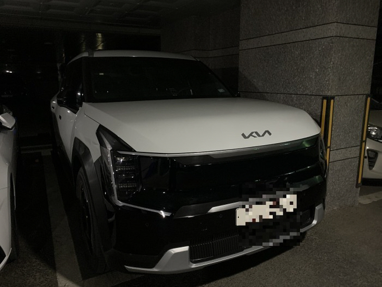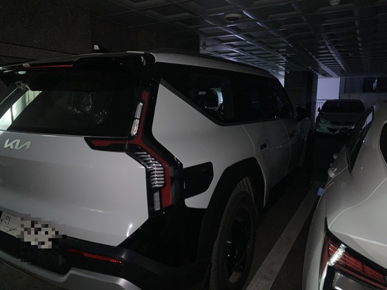 앞뒤 길이도 상당하다. 사진 속 EV9은 후방을 최대한 뒤쪽으로 붙여 주차했음에도 전면부가 기둥 앞쪽으로 상당히 많이 튀어나와있다. 이를 두고 자동차 커뮤니티의 한 회원이 "주차장 민폐 차종 한 대 더 추가됐다"고 오해할 정도다. 물론 실제로 EV9 덩치가 측면 주차선을 넘길 정도까지 과하지는 않다.