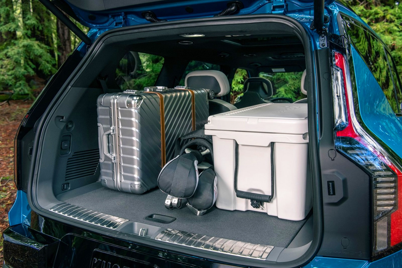 당연히 적재공간은 넓다. 3열만 접고, 짐을 싣고 이동할 경우에는 많은 캠핑장비도 거뜬하다. 단점을 굳이 하나 꼽자면, E-GMP 특성상 EV9의 맨 뒤 바닥면이 그렇게 낮지는 않다.