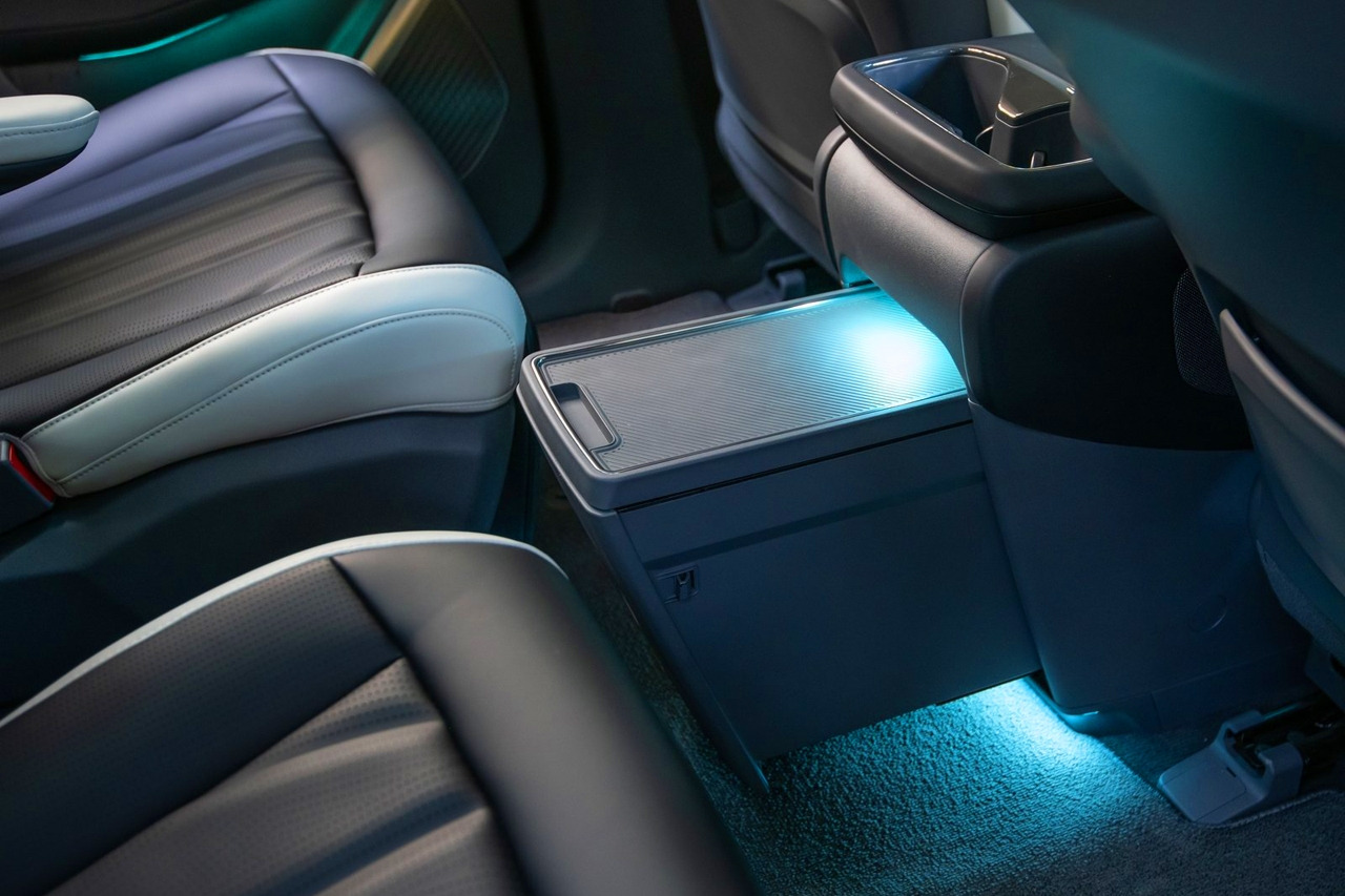 모빌리티 시대를 맞이하면서 거주성이 중요해진 만큼 그에 걸맞은 기능도 추가됐다. 센터 콘솔 후면으로 확장되는 간이 수납함&테이블인데, 작지만 제법 쏠쏠한 실용성을 갖추고 있다.