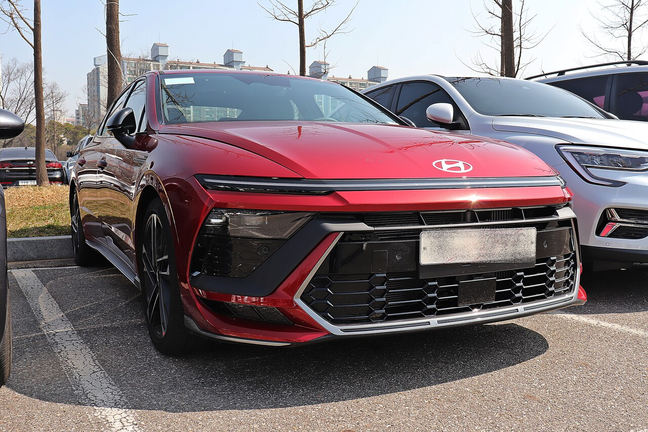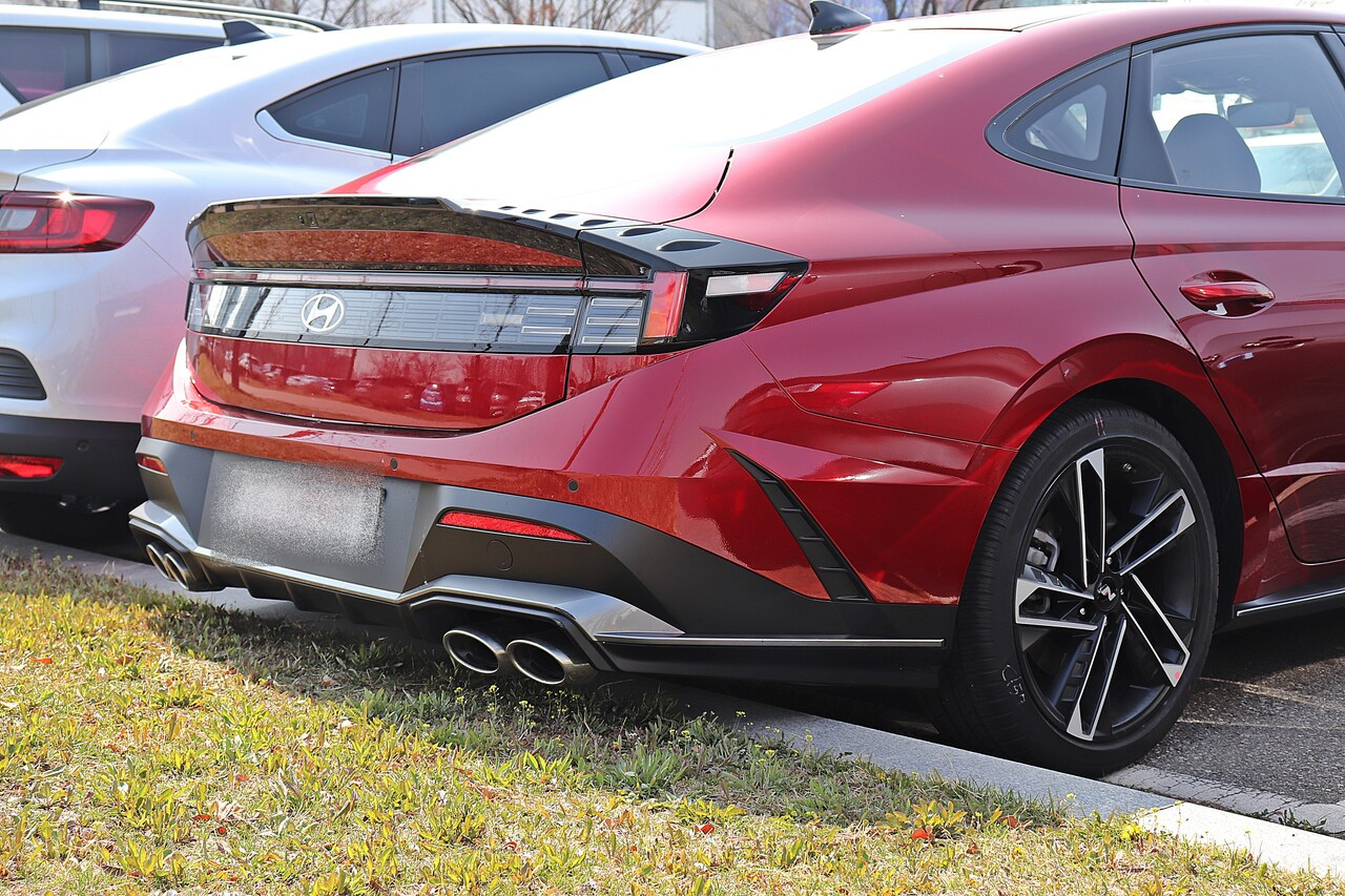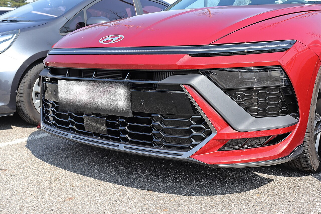 포착된 차량은 쏘나타 N 라인으로, 상징색인 '얼티메이트 레드 메탈릭' 컬러를 적용했다. 무광 컬러인 '에어로 실버 매트'를 상징색으로 사용하며 차분한 인상을 강조하는 기본형과는 사뭇 다른 인상이다.