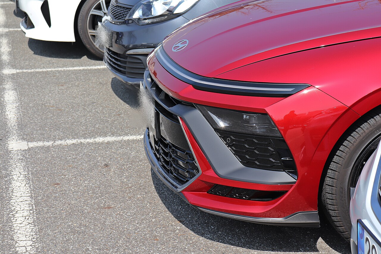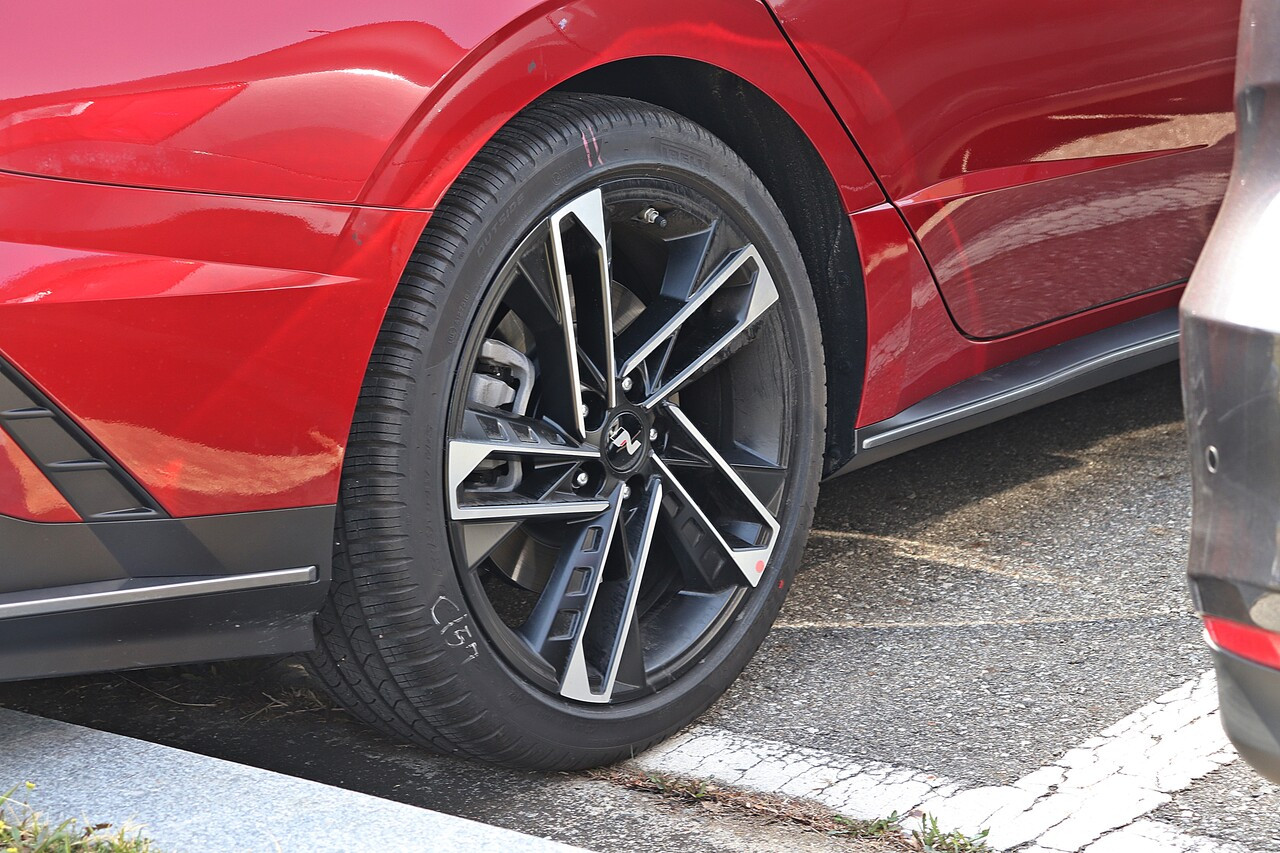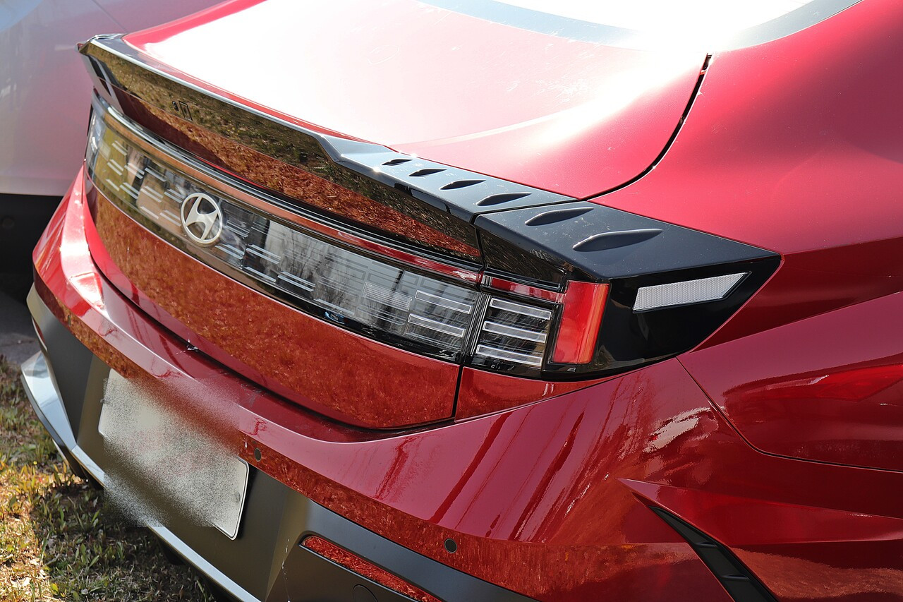 포착된 차량은 쏘나타 N 라인으로, 상징색인 '얼티메이트 레드 메탈릭' 컬러를 적용했다. 무광 컬러인 '에어로 실버 매트'를 상징색으로 사용하며 차분한 인상을 강조하는 기본형과는 사뭇 다른 인상이다.
