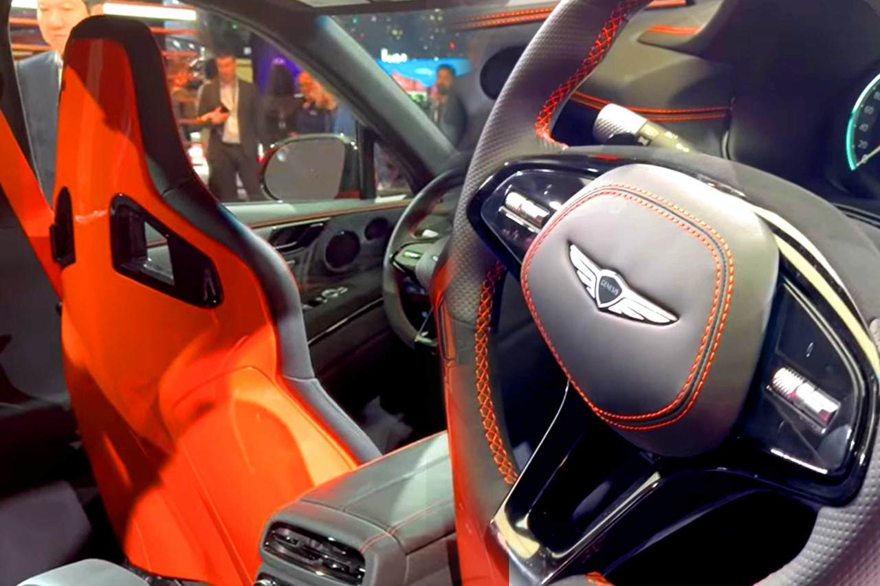 시트에 대해서는 "4인승 버킷시트가 적용되었으며, 머리부터 등받이, 엉덩이 부분까지 전부 알칸타라로 엎었고, 테두리는 나파가죽으로 꾸몄다."라고 전했다. 또 제네시스에 따르면 4인승 버킷시트는 코너링에서 신체 지지력을 높여 승객의 안전과 편안함을 제공하며, 차량의 외장과 동일한 색상으로 칠해진 탄소섬유 재질의 등받이는 외향적인 쿠페의 특성을 더욱 돋보이게 한다.
