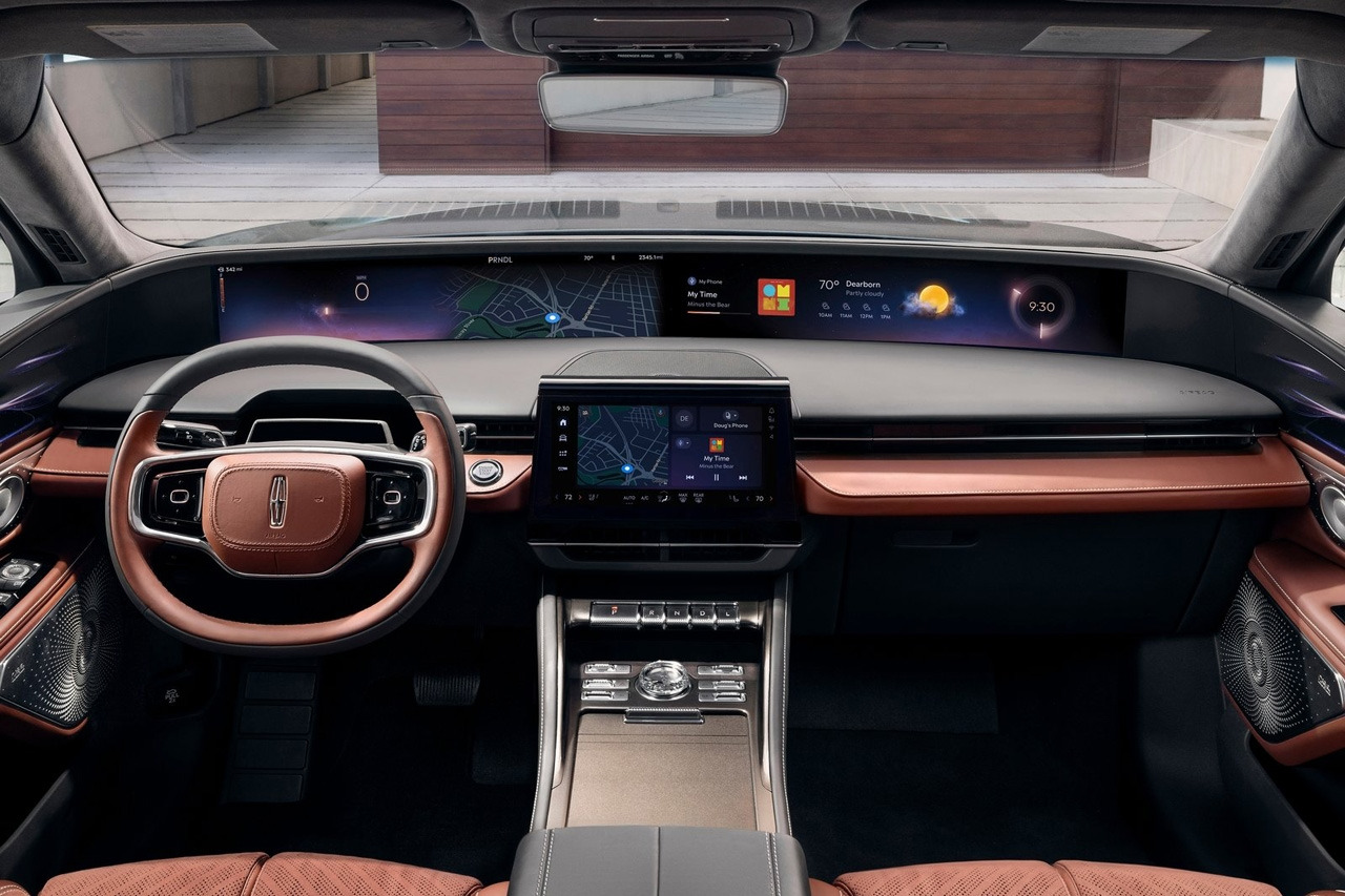 실내는 1열 탑승자를 감싸는 형태의 디자인인 ‘랩 어라운드 디자인’을 링컨만의 색깔로 표현했다. 센터패시아 상단부라는 개념이 사라진 정도다. 1열을 감싸는 형태의 디자인을 뜻하는 랩 어라운드 디자인은 탑승자들에게 안정감을 더해주는 디자인으로 많이 사용된다. 그러나 링컨은 여기에 대형 디스플레이를 더했다. 링컨은 현재까지 공식적으로 적용된 디스플레이의 크기를 밝히진 않았다. 그러나 최신 차량들에게서 보지 못한 디스플레이 크기인 것은 분명해 보인다.