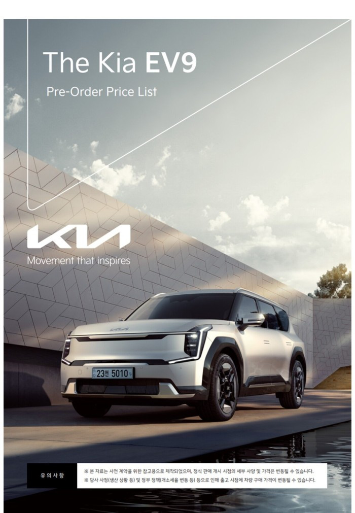 EV9의 가격은 ▲에어 2WD 7,671만원 ▲GT-line 8,781만원이다. (※ 환경친화적 자동차 세제혜택 전, 개별소비세 3.5% 기준)