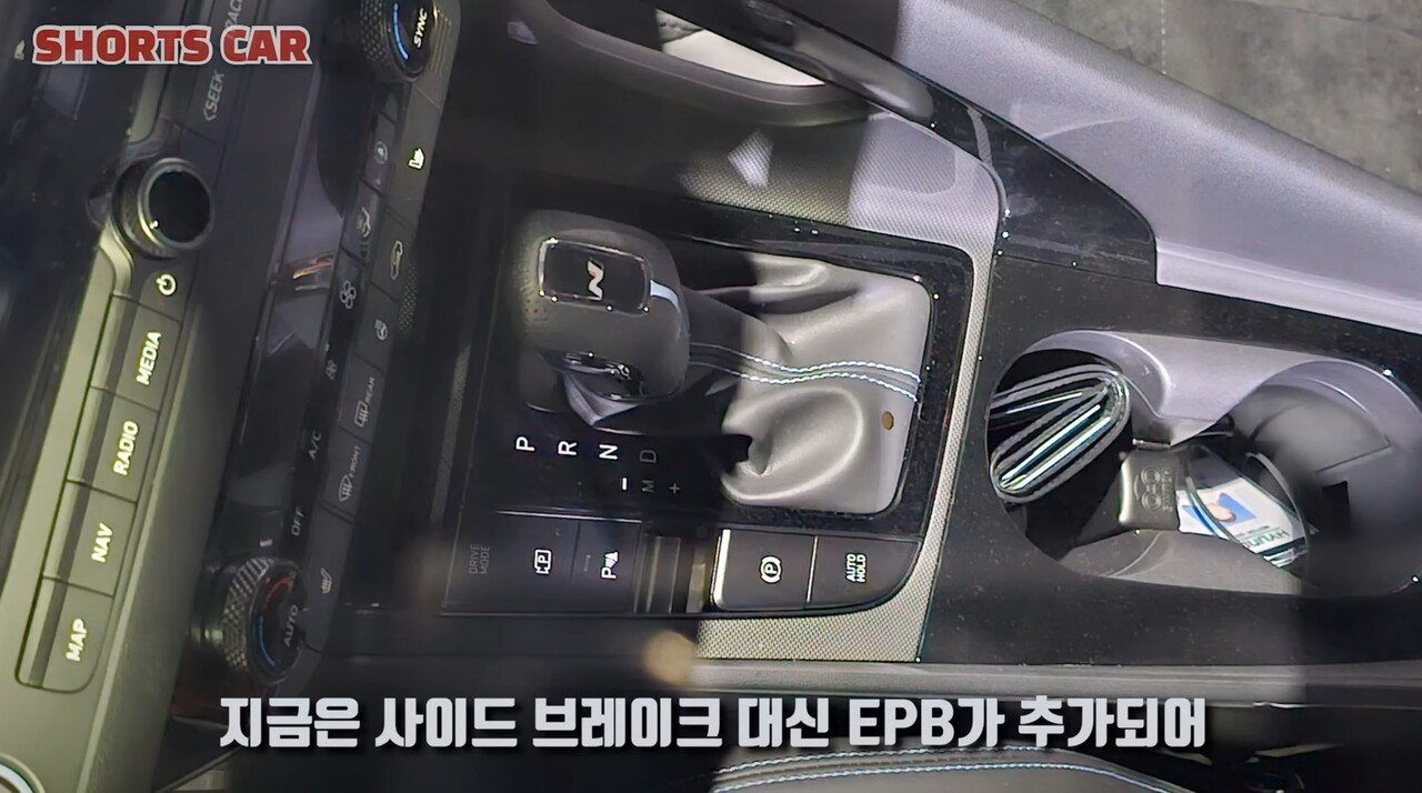 전자식 파킹 브레이크와 오토홀드는 기어노브 측면에서 확인할 수 있다. 수동변속기 모델에서는 이 기능들이 제외되고 기존과 동일하게 핸드브레이크 방식이 유지될 가능성이 높다.