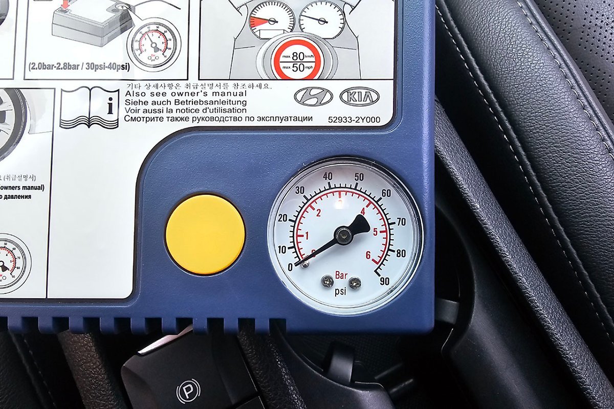 충전 시 컴프레셔 본체에 있는 압력 게이지를 통해 타이어 공기압을 확인하면서 공기를 주입하면 되는데, 적정 공기압은 운전석 B 필러에 부착된 차량 적정 공기압 정보를 참고하면 된다. 만약 적정 공기압을 넘겼을 경우 컴프레셔를 끄고 연결호스 끝부분의 압력 조절 밸브로 공기압을 조절하면 된다.
