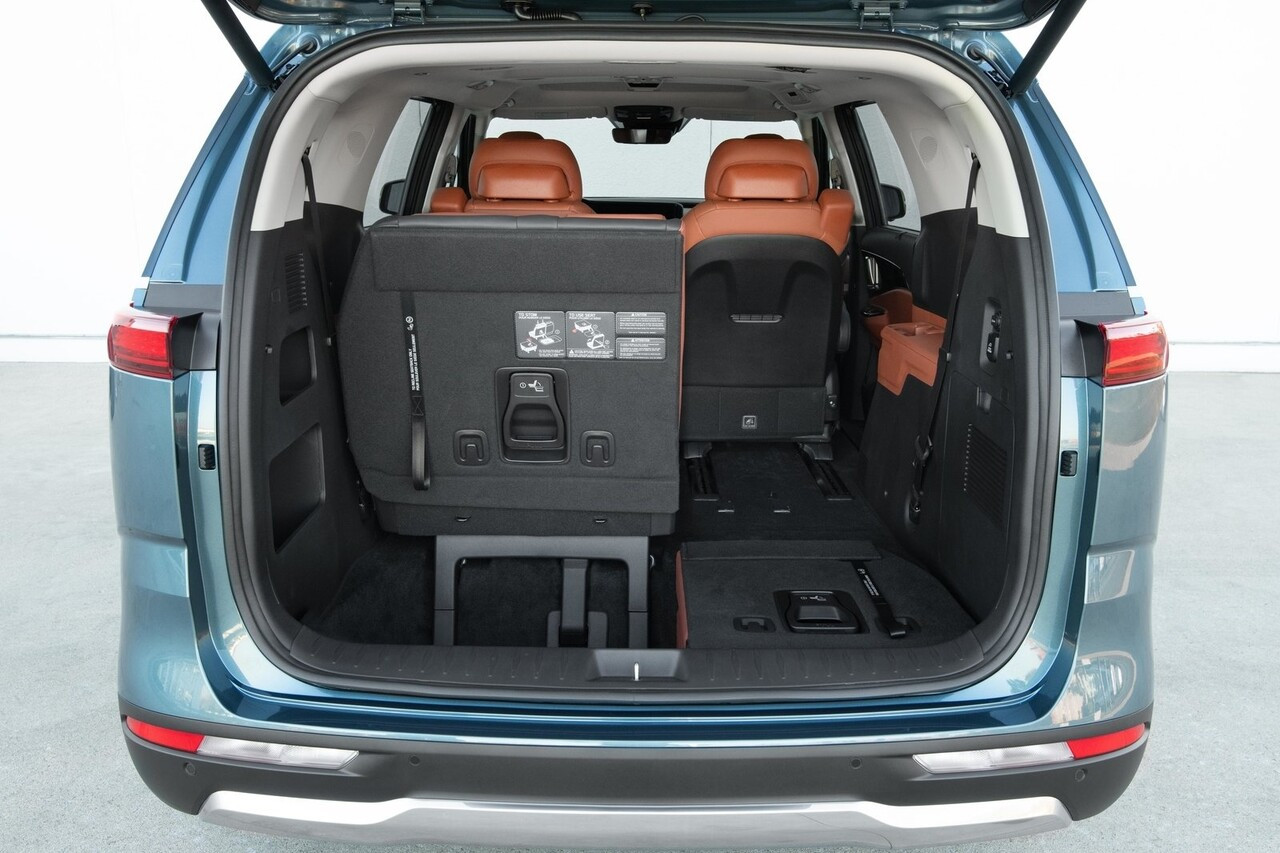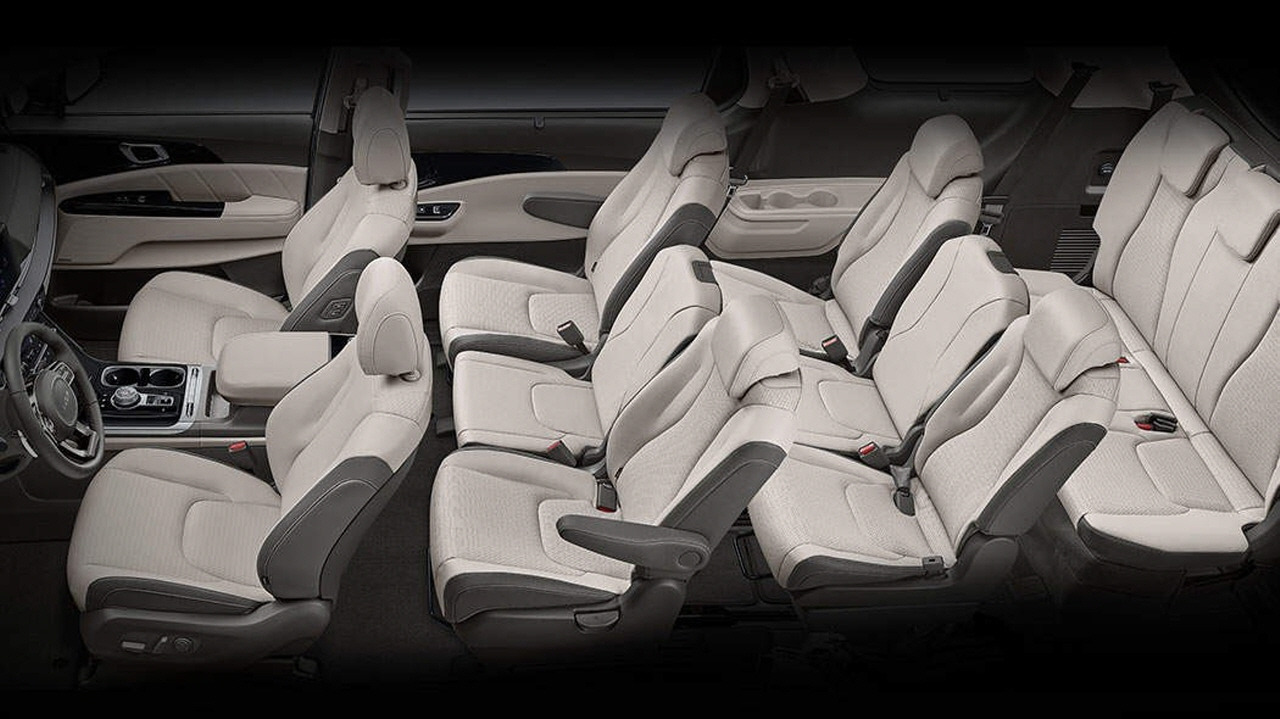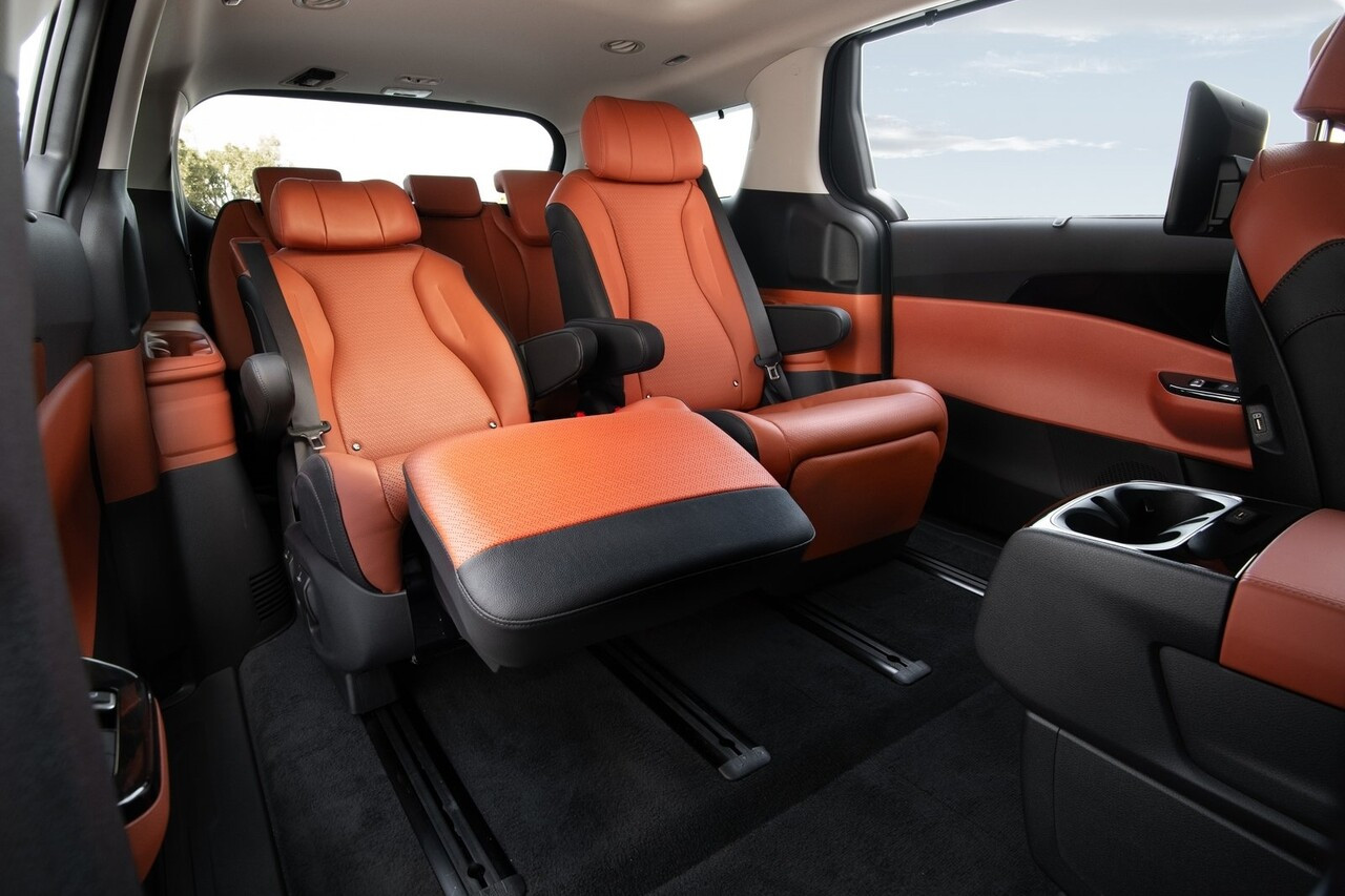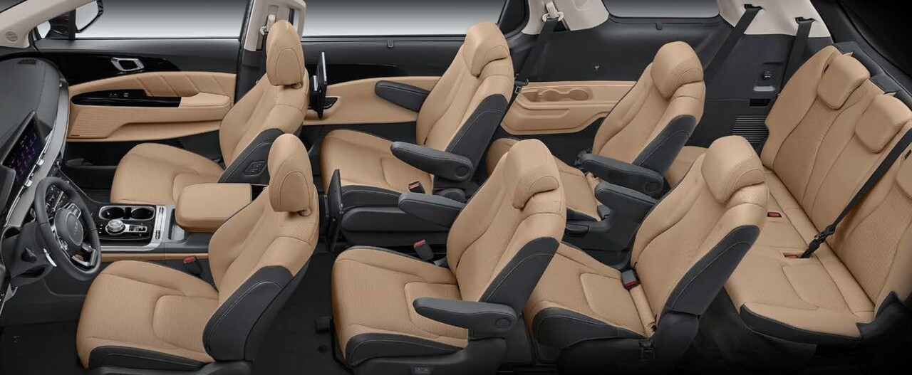 카니발 7인승이 이렇게 비싼 이유는 좌석 수를 줄인 대신 2열과 3열의 편의성을 극대화했기 때문이다. 9인승 모델에서는 옵션으로 제공되는 가죽 시트와 2열 프리미엄 릴렉션 시트가 기본 제공된다. 2열 시트는 열선과 통풍 기능, 윙 타입 헤드레스트가 기본으로 적용된다. 시트의 슬라이딩 폭도 9인승과 비교해 훨씬 넓으며, 앞뒤뿐 아니라 좌우 슬라이딩이 가능한 것도 특징이다.
