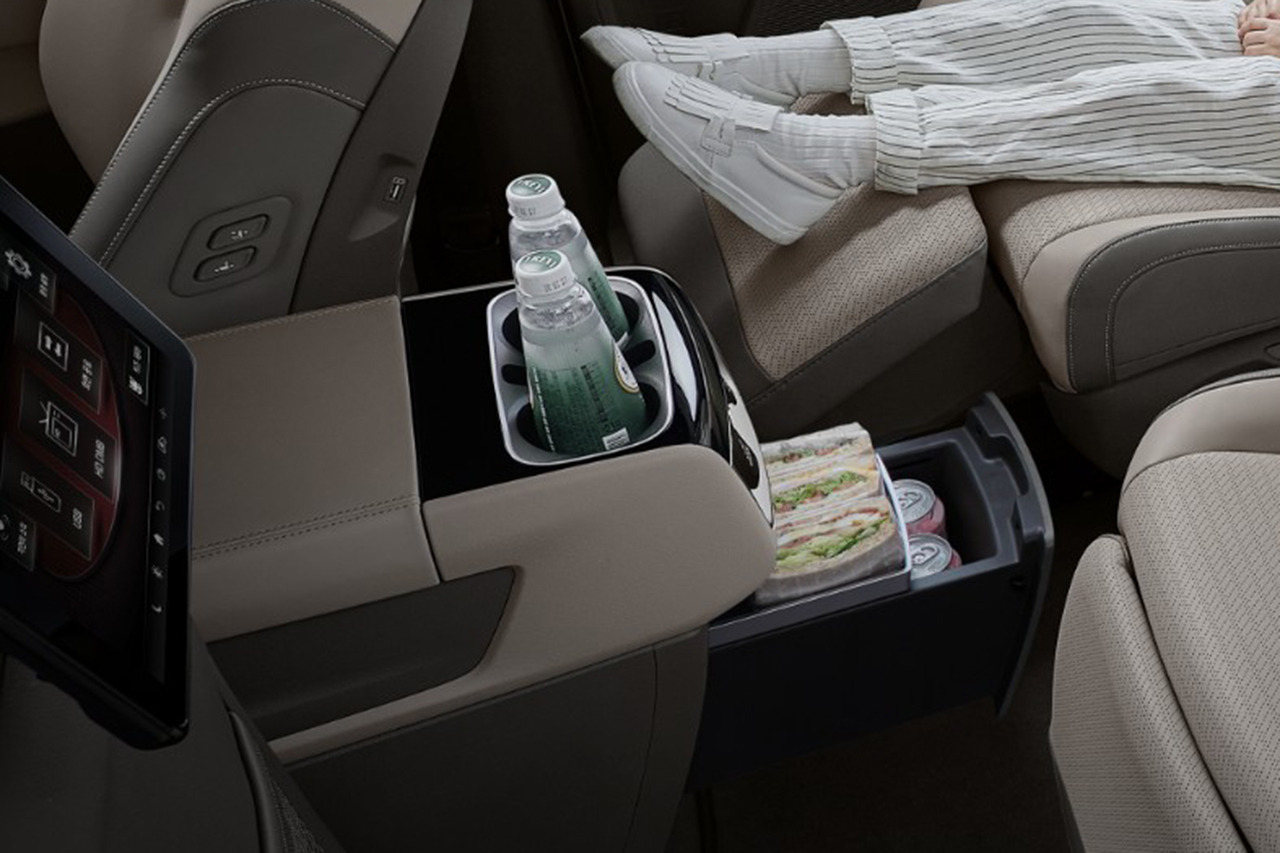 7인승의 프리미엄 릴렉션 시트 수준까지는 아니지만, 9인승 모델도 컴포트 옵션을 선택하면 2열과 3열의 편의성을 키울 수 있다. 통풍시트 기능이 제공되는 2열 파워 리클라이닝 시트와 확장형 센터 콘솔, 충전용 3열 USB 단자 등이 제공된다. 전석 시트가 가죽 시트로 변경되는 것도 특징이다. 하지만 컴포트 옵션을 넣으면 2열이 완전히 접혀지지는 않아 차박에는 불리하다.