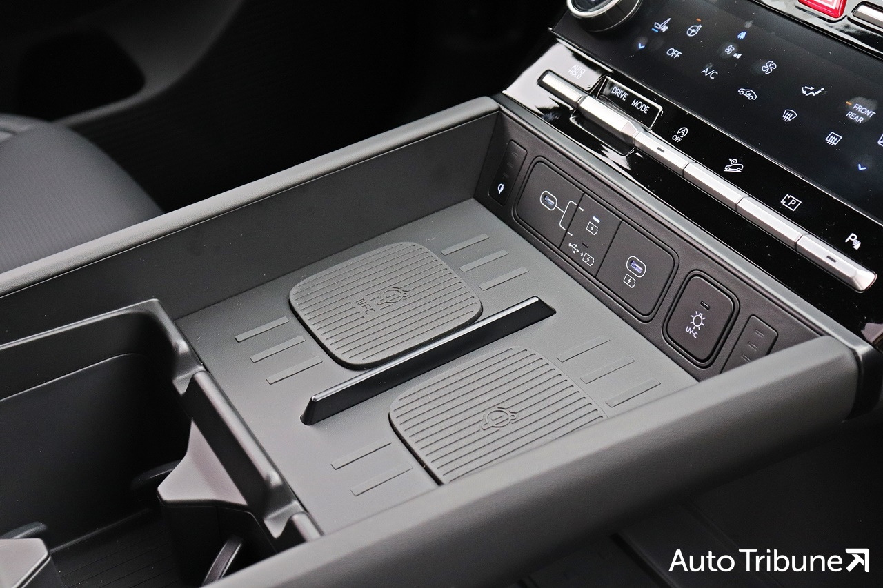테일게이트와 3열이 특히 강조됐지만 1열의 개방감도 무시할 수 없다. 최근 현대차 기조에 맞춰 변속 레버를 스티어링 칼럼으로 옮겼다. 그 결과 센터 콘솔 자리가 크게 확보됐으며, 국산 SUV 최초로 스마트폰 두 대를 한꺼번에 충전할 수 있는 듀얼 무선 충전 패드를 배치해 실용성을 높였다.