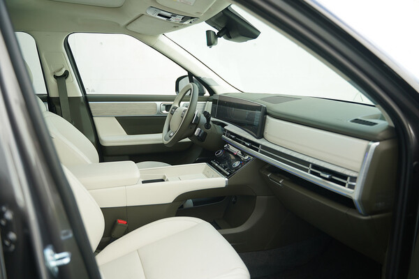 시트도 나파가죽 시트, 운전석 에르고 모션 시트(18way, 4way 럼버 서포트, 자세메모리시스템, 스트레칭 모드), 동승석 워크인 디바이스, 1열 릴렉션 컴포트 시트(레그레스트)가 적용되어 GV80 수준의 사양을 누릴 수 있다.