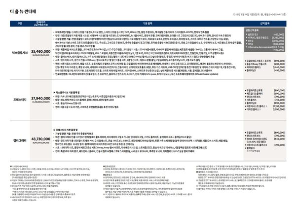 이번 신형 싼타페는 기본 트림인 익스클루시브에 기본 적용된 사양이 많아 가성비를 우선하는 경우에는 익스클루시브에 합리적으로 선택사양을 적용하는 것을 추천한다.